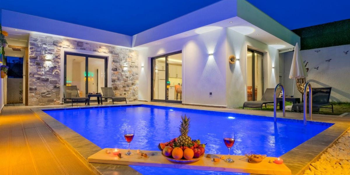 Bu ilan ait Detaylı açıklama ve bilinmesi gereken detaylarFethiye Karaçulha mevkiinde doğa ile iç içe konumlanan bu 4 kişilik kiralık villa, sakin atmosferi ve mahremiyet sunan yapısıyla huzurlu bir villa kiralama deneyimi sağlamaktadır. Korunaklı villa konseptine sahip olan villamız, özellikle muhafazakar villa arayışında olan aileler ve çiftler için rahat ve güvenli bir tatil ortamı sunar. Havuz ve bahçe alanı dışarıdan görünmeyecek şekilde planlanmış olup gözlerden uzak bir kullanım imkânı sağlar.