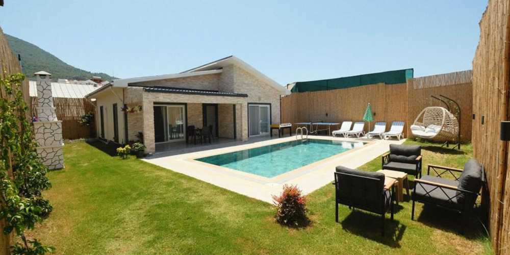 Fethiye Karaçulha bölgesinde yer alan bu korunaklı villa, muhafazakar villa konsepti ve geniş bahçe alanıyla villa kiralama sürecinde hem huzur hemde mahremiyet arayan misafirler için öne çıkan bir kiralı villa alternatifidir.