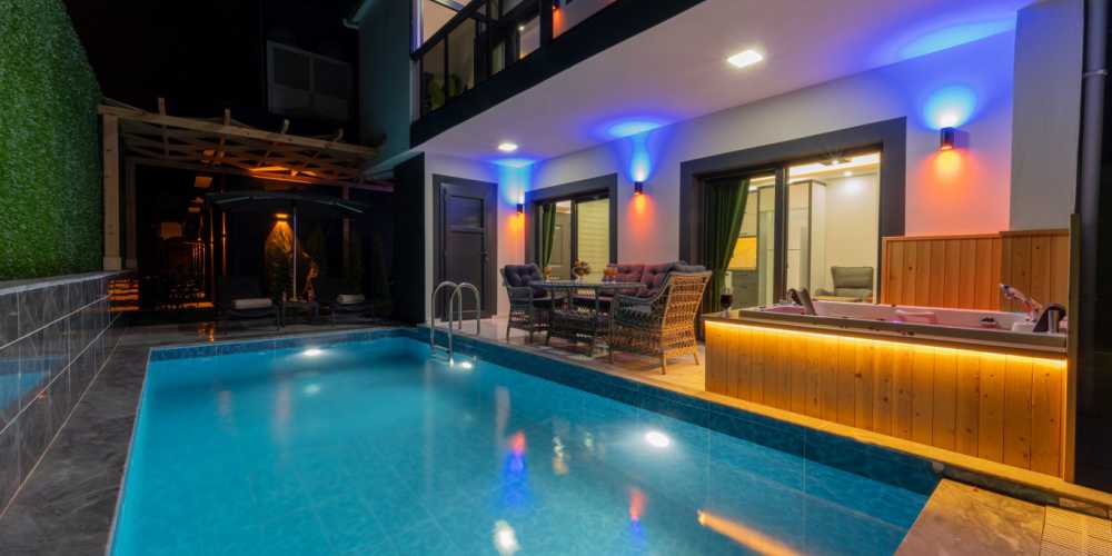 Villanın bahçe alanında yer alan jakuzi, günün yorgunluğunu atabileceğiniz özel bir dinlenme alanı oluşturmaktadır. Mahremiyetine önem veren misafirler için tasarlanan yapısıyla korunaklı villa konseptine uygun bir konaklama sunar. Bu yönüyle özellikle muhafazakar villa arayışında olan aileler için güvenli ve rahat bir ortam sağlamaktadır.