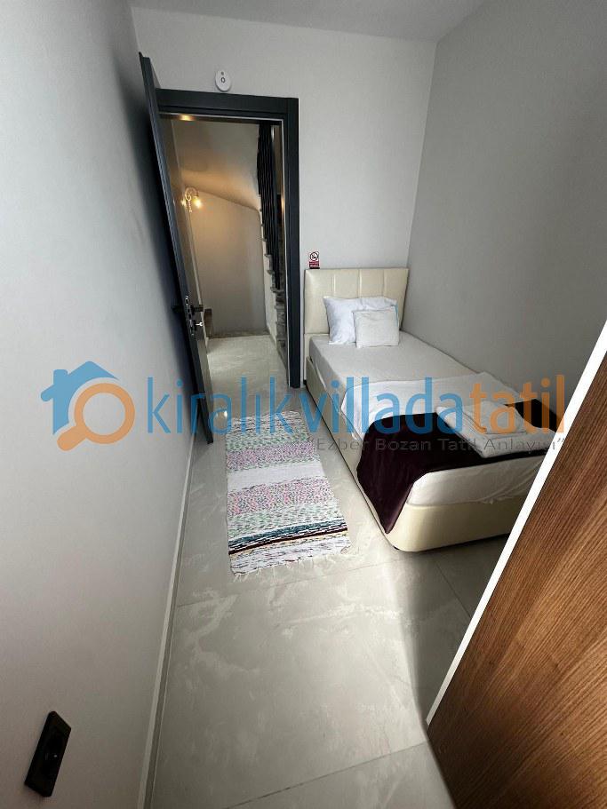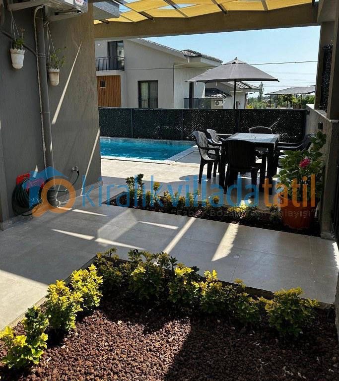 Modern mimarisi, ferah iç hacmi ve fonksiyonel planlamasıyla öne çıkan villamız; 3 yatak odası ve maksimum 6 kişilik konaklama kapasitesiyle hem aileler hem de arkadaş grupları için konforlu bir villa kiralama deneyimi vadediyor. Şık şekilde dekore edilmiş yatak odaları, tam donanımlı açık mutfağı ve geniş salon alanı sayesinde tatil boyunca ev rahatlığını hissedersiniz.