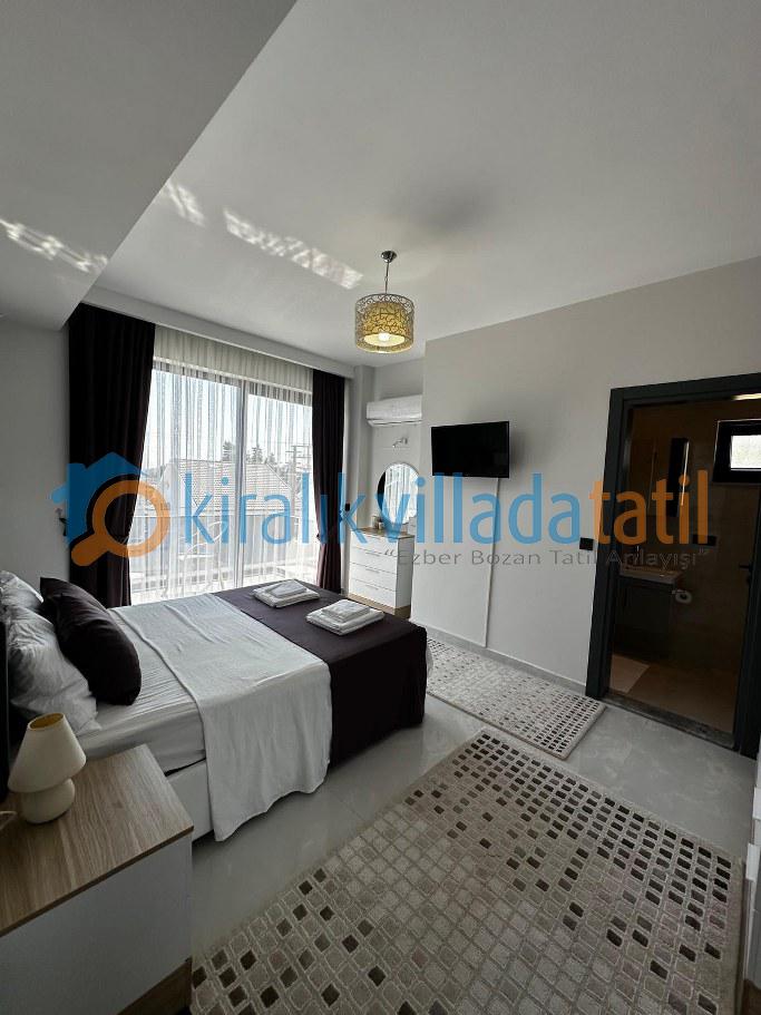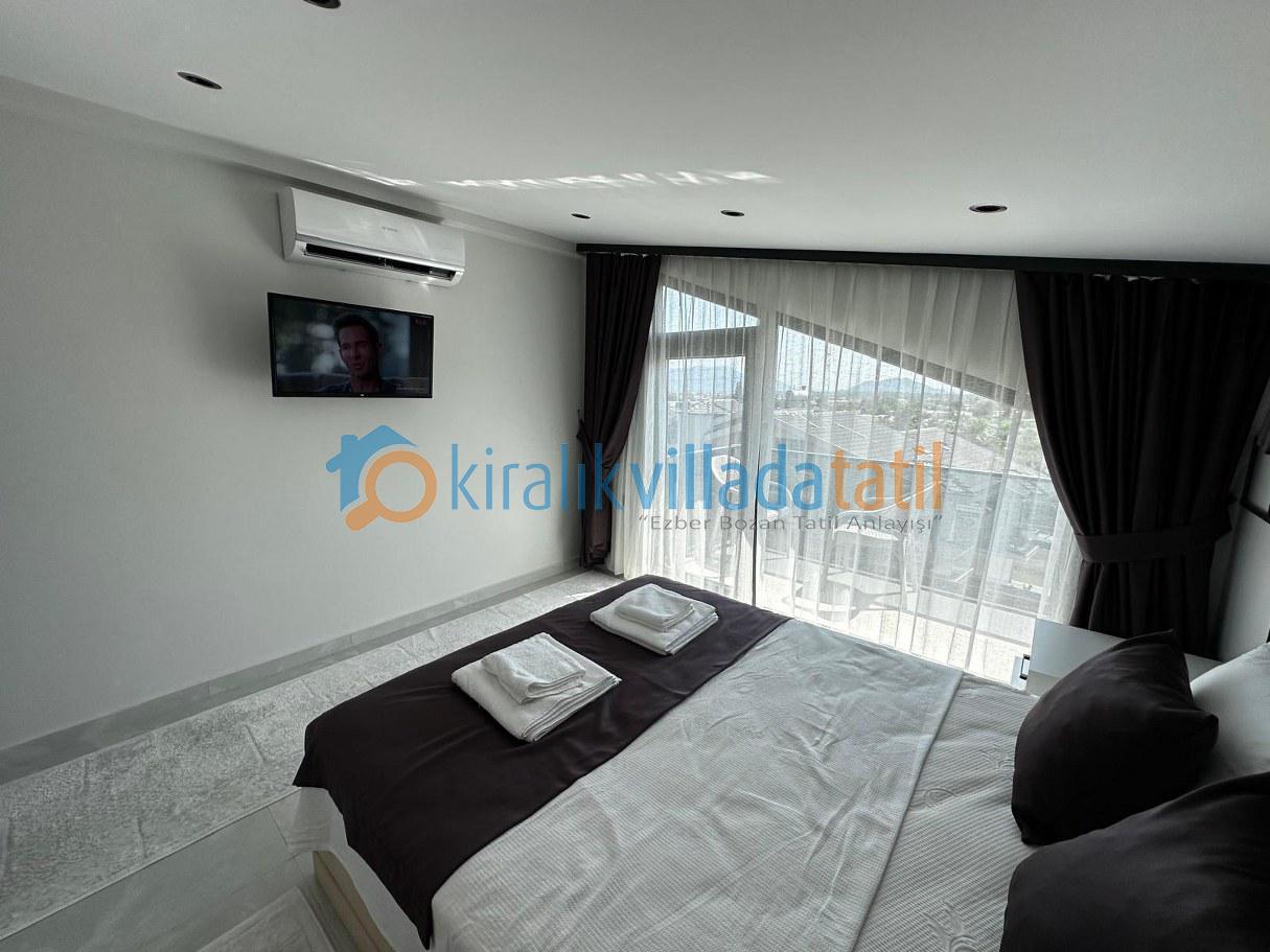 Villaya ait özel yüzme havuzu ve geniş güneşlenme terası gün boyu keyifli vakit geçirmenize olanak sağlarken; klima ve TV gibi temel donanımlar konforu tamamlıyor. Plaja ve şehir merkezine kolay ulaşım avantajı sayesinde hem doğanın huzurunu yaşayabilir hem de Fethiye’nin sosyal olanaklarına kısa sürede erişebilirsiniz.