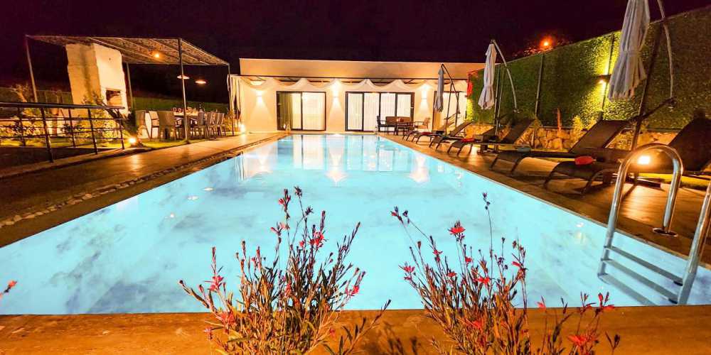 Havuz ve bahçe alanı mahremiyet ön planda tutularak düzenlenmiş olup korunaklı villa yapısına sahiptir bu özelliği sayesinde muhafazakar villa arayışında olan aileler içinde güvenli ve rahat bir kullanım sunar geniş yaşam alanı doğa ile bütünleşen mimarisi ve modern çizgisiyle lüks villa beklentisini karşılayan bir tatil alternatifidir.
