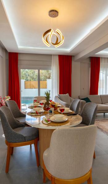 Muğla'nın doğayla iç içe Seydikemer ilçesi, Gerişburnu Mahallesi’nde yer alan Villamız, 6 kişilik konaklama kapasitesi ile lüks ve konforu bir arada sunmaktadır. Tripleks mimariye sahip villalarımız; özel sauna, hamam ve jakuzisi ile unutulmaz bir tatil deneyimi vadeder. Ailenizle birlikte huzurlu ve keyifli bir tatil geçirmeniz için tüm detaylar özenle düşünülmüştür.