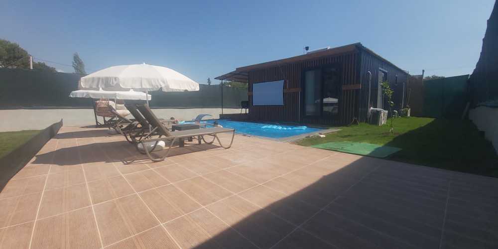 Salon alanı havuz terasına doğrudan açılmakta olup ferah ve kullanışlı bir yerleşime sahiptir. tam donanımlı mutfak bölümü günlük ihtiyaçlar düşünülerek hazırlanmıştır yatak odaları konforlu yataklarla donatılmış olup rahat bir konaklama deneyimi sunmaktadır ayrıca havuz terasında yer alan açık hava sinema perdesi akşam saatlerinde keyifli ve farklı bir tatil deneyimi yaşamanıza imkân tanır.