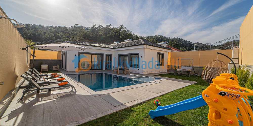 Fethiye Yanıklar bölgesinde yer alan bu korunaklı villa muhafazakar villa konseptine uygun yapısı ve doğa içindeki huzurlu konumuyla villa kiralama sürecinde güvenli ve konforlu bir kiralık villa arayan misafirler için öne çıkan seçeneklerden biridir