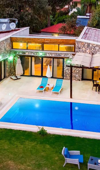 Havuz ve havuz terası korunaklı olan villamız, dış gözlerden uzak bir tatil yaşamak isteyen aileler ve arkadaş grupları için ideal bir villadır. Doğa içerisinde, yeşil bahçesi ile, dinlendirici ve huzurlu bir tatil sunan villamızda, aynı zamanda, Jakuzi, BBQ alanı, masa tenisi gibi eğlenceli zamanlar geçirebileceğiniz alternatifler de mevcuttur.