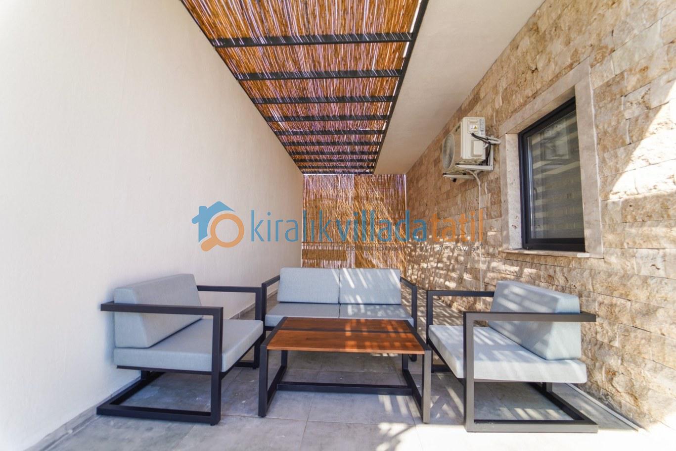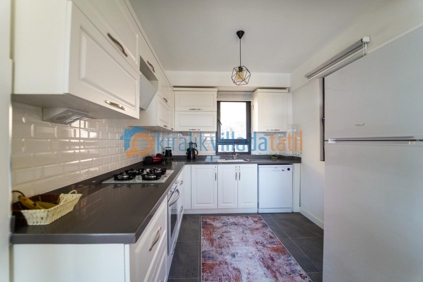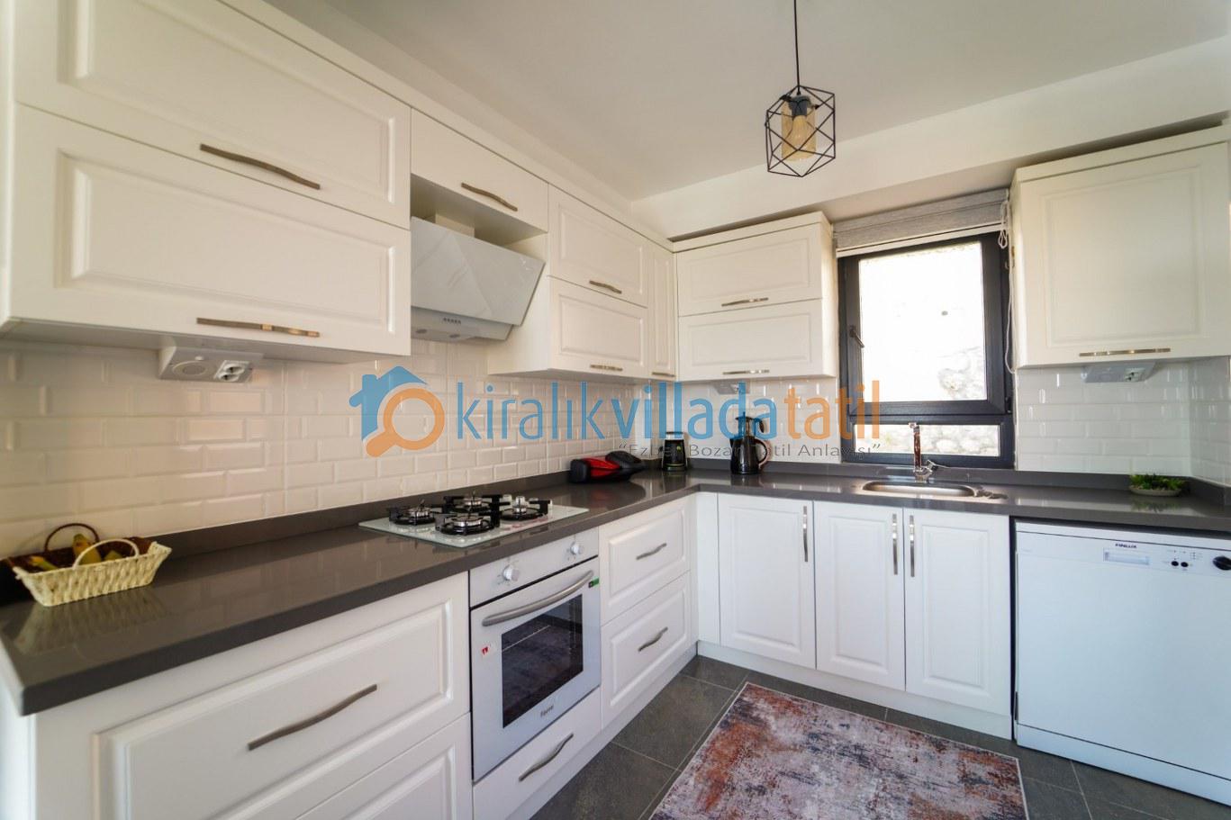 Tatil boyunca ihtiyaç olabilecek gerekli ev ve mutfak araç gereçlerine sahip olan villada, misafir konforu da gözetilerek, modern ev eşyaları kullanılmıştır.