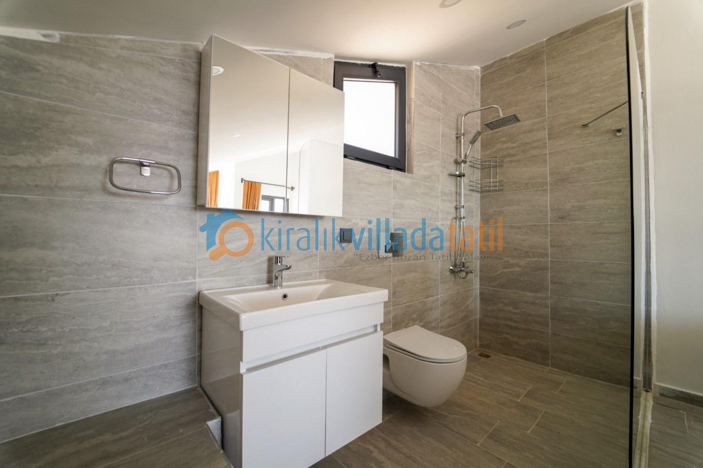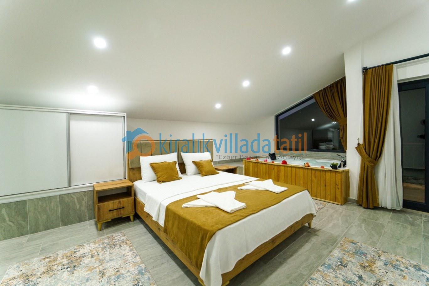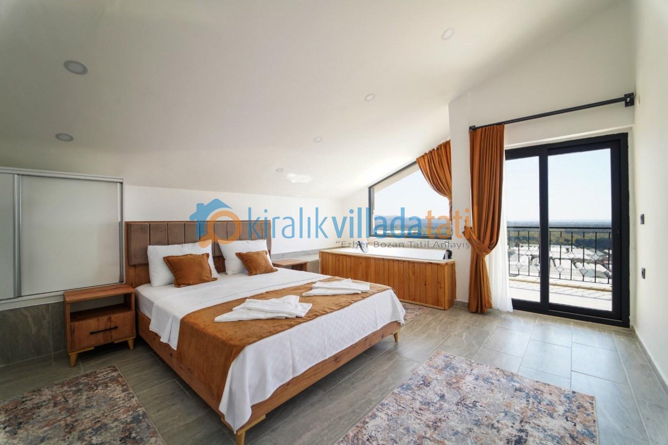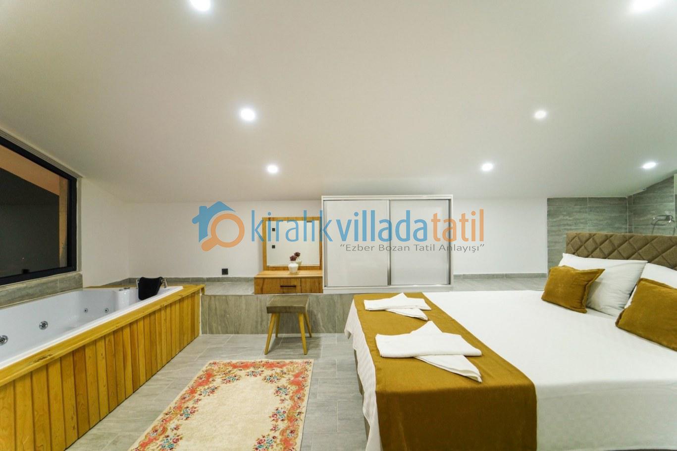 Dört yatak odasına sahip olan villanın, üç yatak odasında çift kişilik yataklar, diğer yatak odasında ise, iki adet tek kişilik yataklar bulunmaktadır. Odaların, kendilerine ait, klima, gardrop, banyo-wc gibi olanakları da mevcuttur.