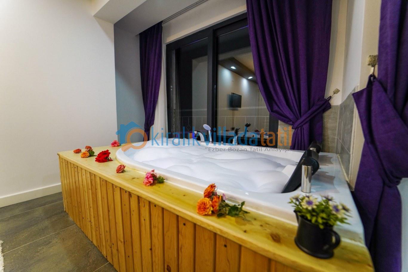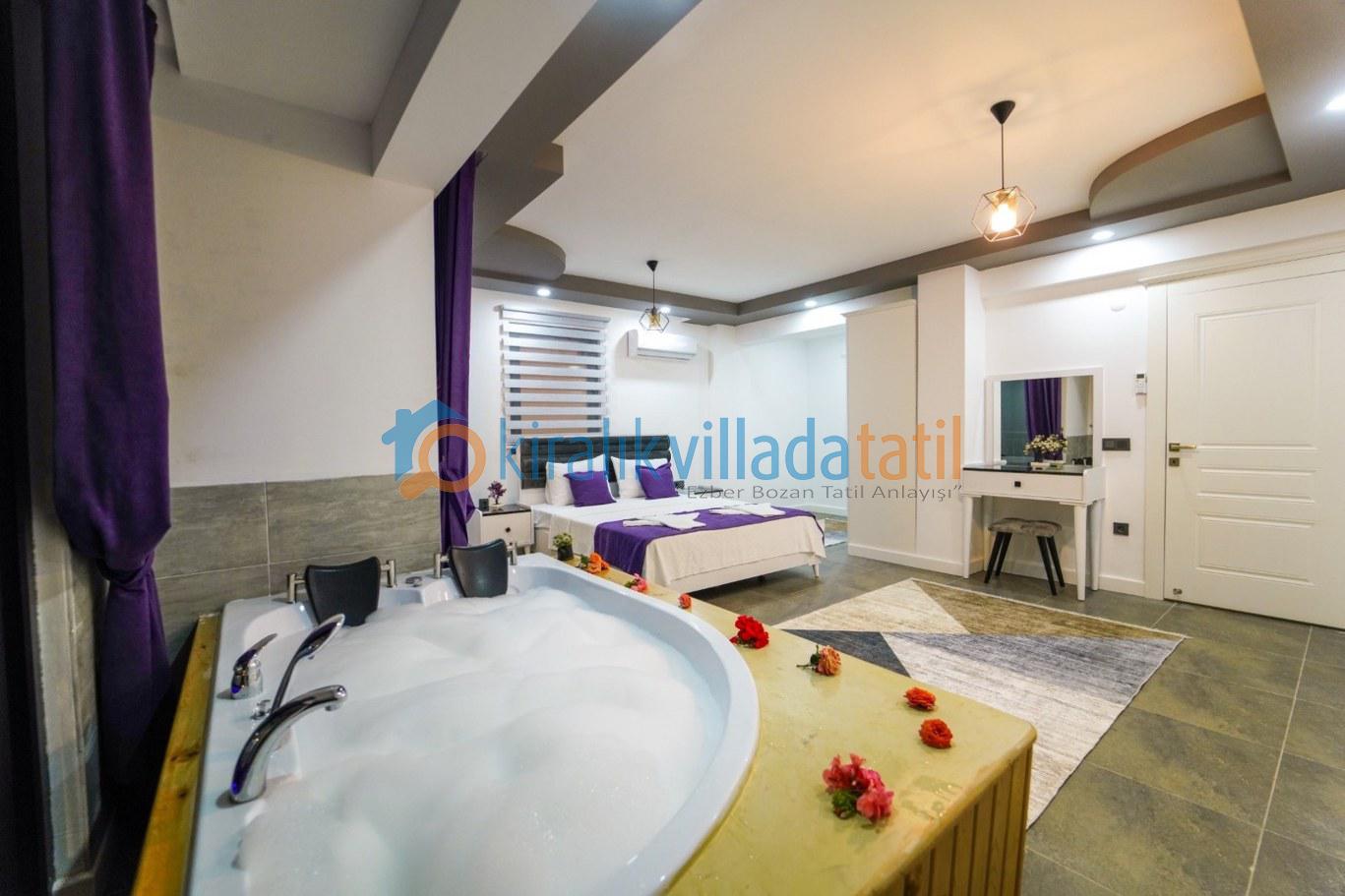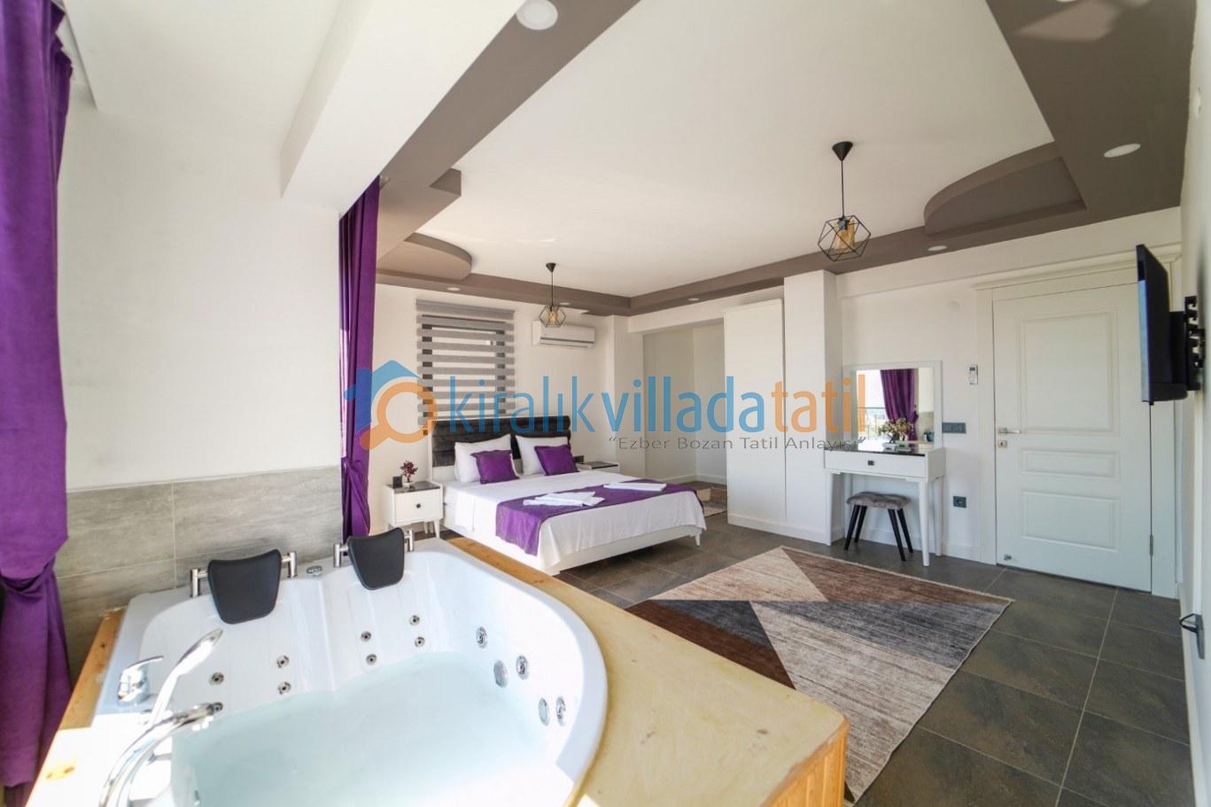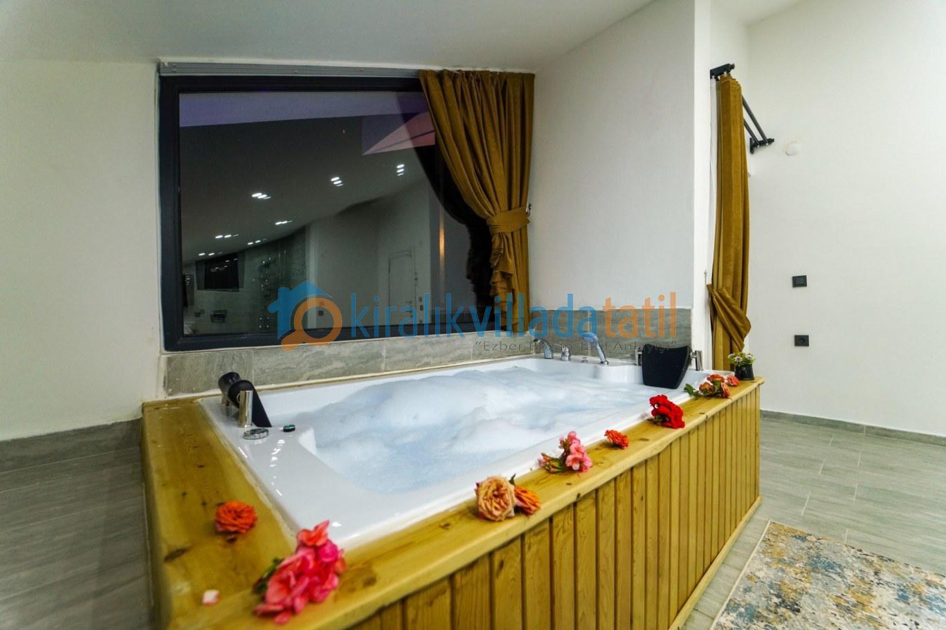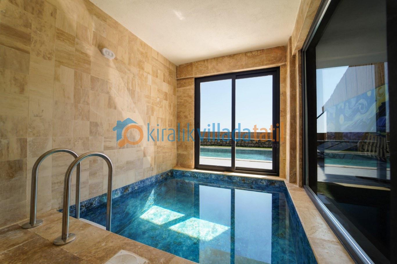 Eğlenceli ve dinlendirici bir tatil sunan villa, üç adet jakuzi, sauna, mangal alanı, ısıtılabilir iç havuzu gibi olanakları ile dikkat çekmektedir.