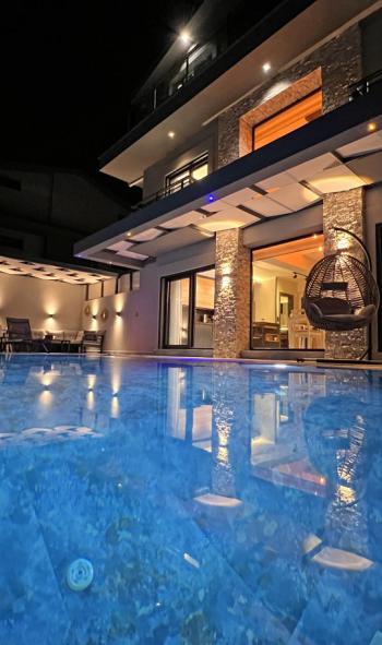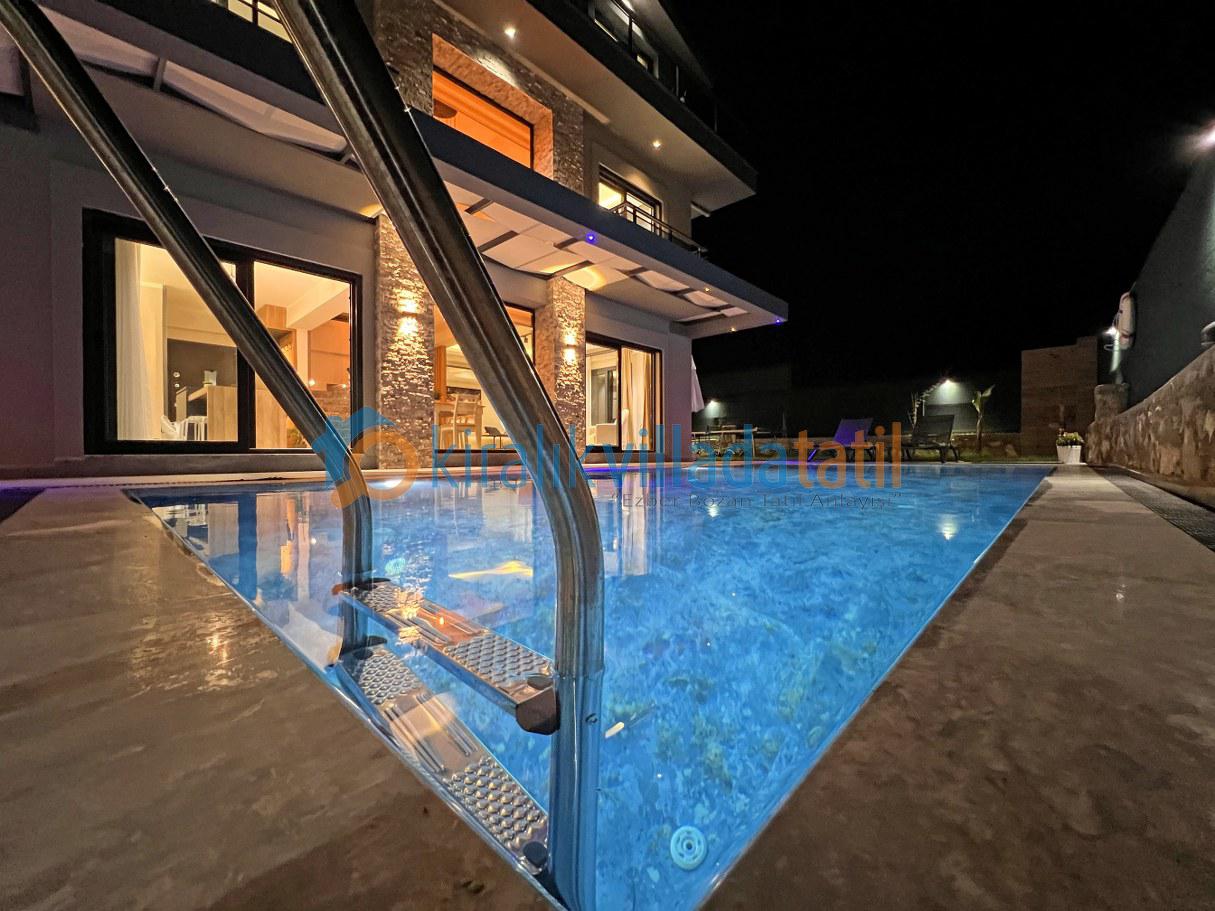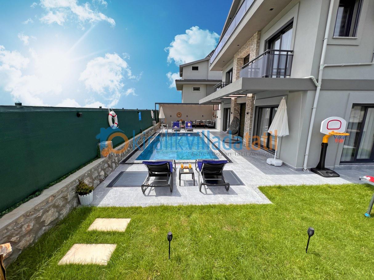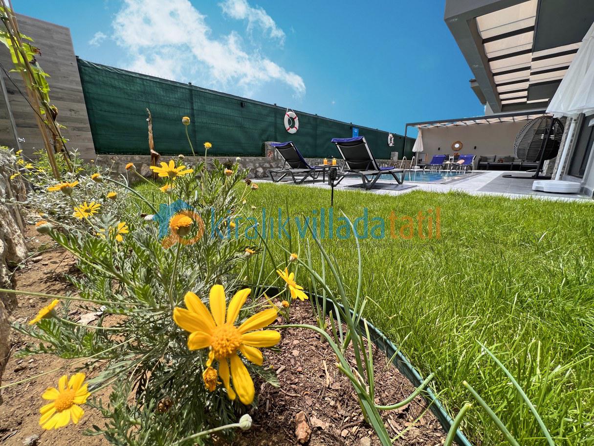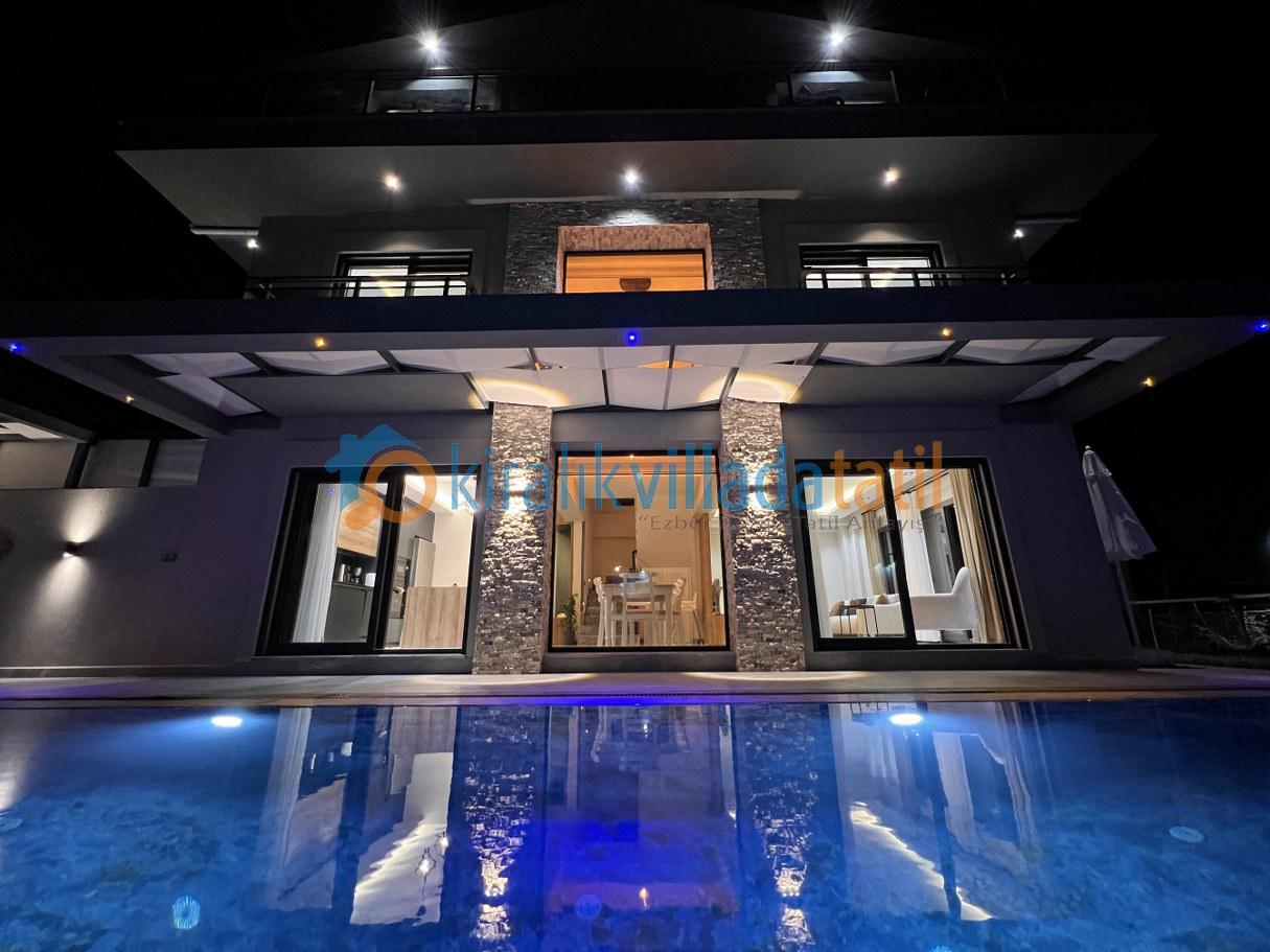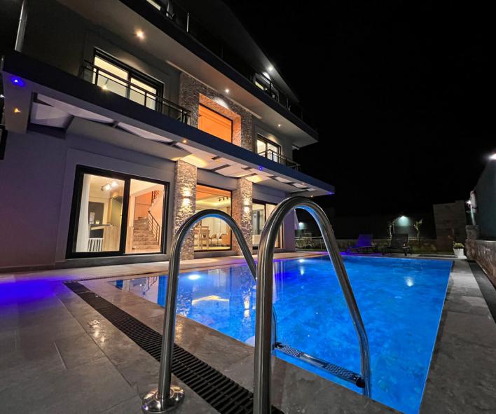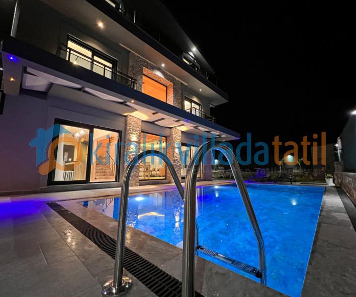 Bu ilan ait Detaylı açıklama ve bilinmesi gereken detaylarDoğanın huzurunu modern yaşam konforuyla birleştiren bu özel villa, Fethiye’nin yemyeşil atmosferiyle öne çıkan Esenköy mevkiinde yer almaktadır. Şehrin gürültüsünden uzak, tamamen doğayla iç içe bir ortamda konumlanan villamız; geniş kapasitesi, modern tasarımı ve sunduğu imkanlarla kalabalık aileler ve arkadaş grupları için mükemmel bir tatil seçeneğidir. Toplamda 4 yatak odası ve 8 kişilik konaklama kapasitesi bulunan villamız, ferah iç mekanları ve geniş bahçe alanıyla misafirlerine rahat bir tatil alanı sunar. Esenköy’ün doğayla bütünleşen sakin atmosferi, villaya ayrı bir huzur katar. Ayrıca merkeze ve çevredeki popüler turistik noktalara kısa sürede ulaşabilme avantajı, tatil boyunca konforlu bir deneyim sağlar. Villanın dış alanı, günün her saatinde keyifle vakit geçirilebilecek şekilde tasarlanmıştır. 7.5 x 3.5 metre ölçülerinde ve 1.50 metre derinliğinde özel yüzme havuzu tamamen korunaklı olup, dışarıdan görünmeyecek biçimde planlanmıştır.