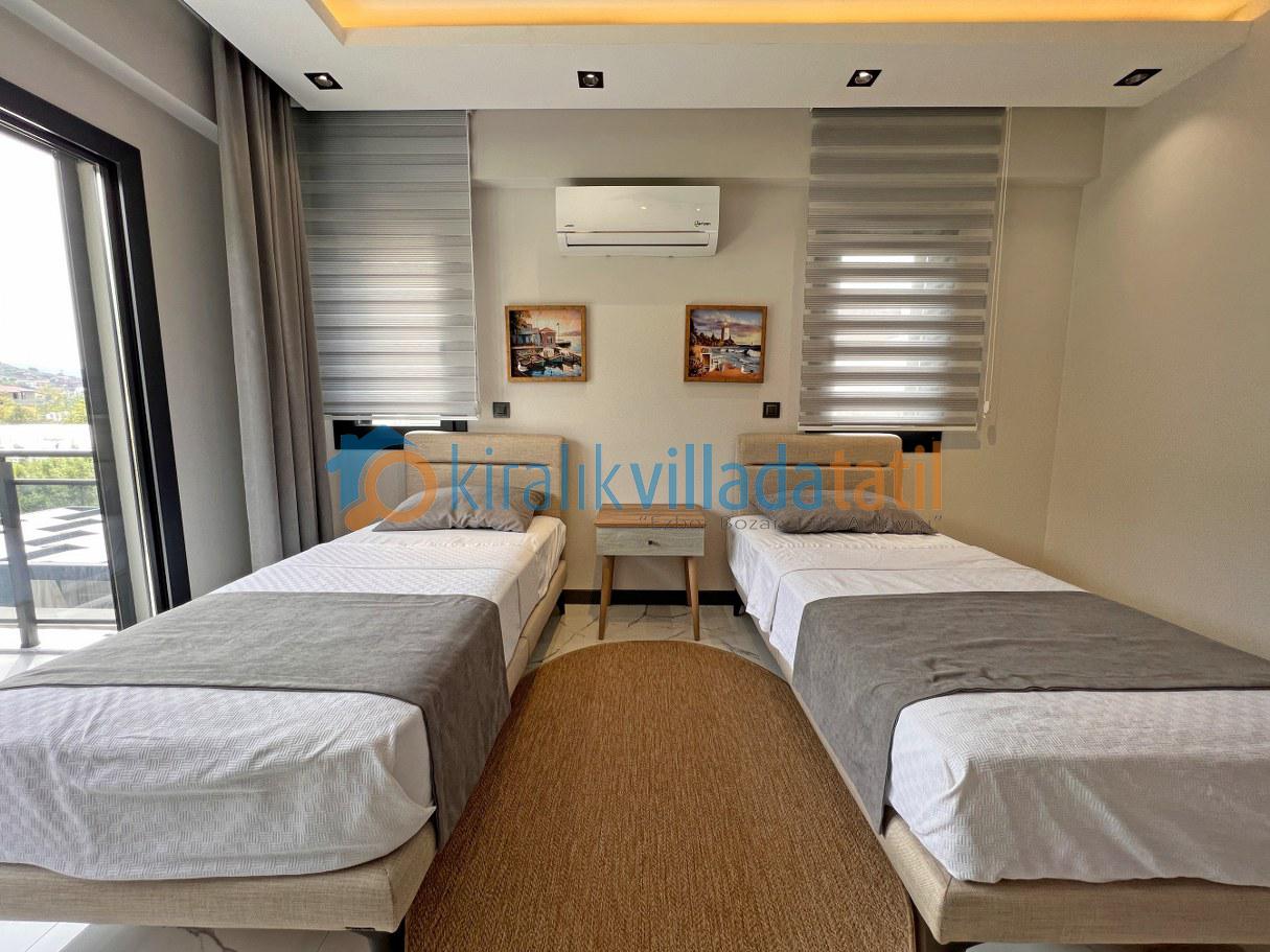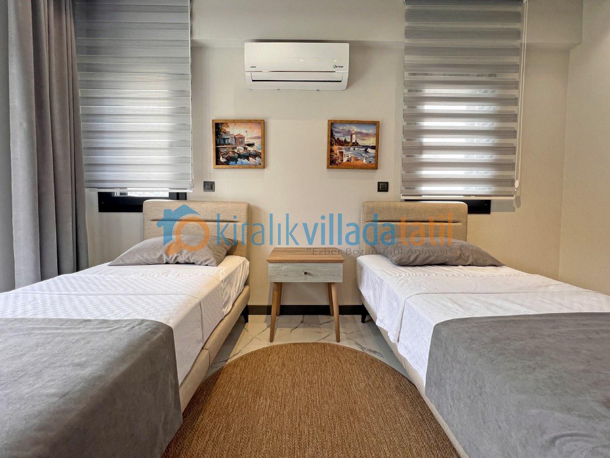 Üçüncü ve dördüncü yatak odaları ise ikişer adet tek kişilik yatakla hazırlanmış olup, çocuklu aileler ve arkadaş grupları için idealdir.