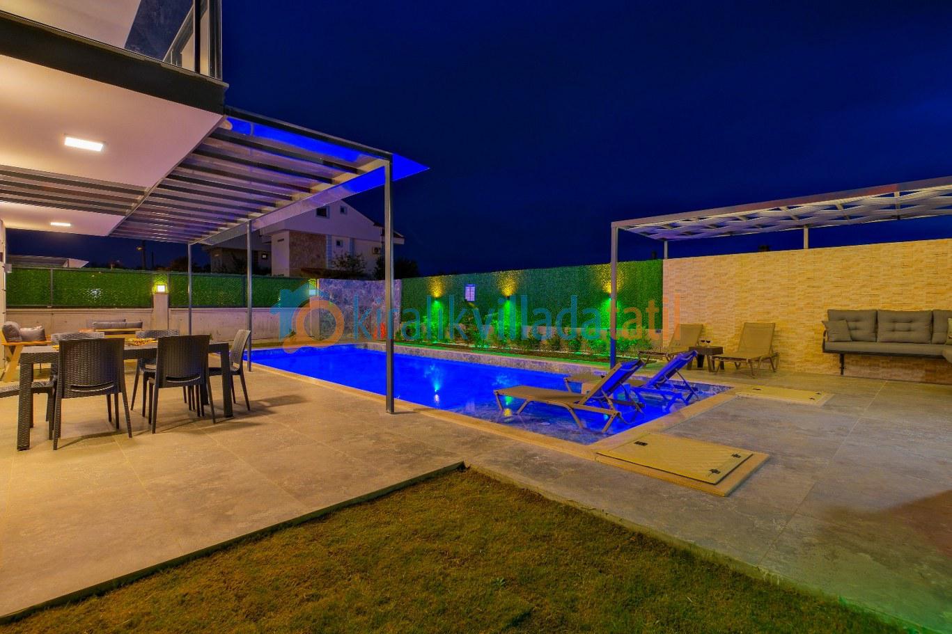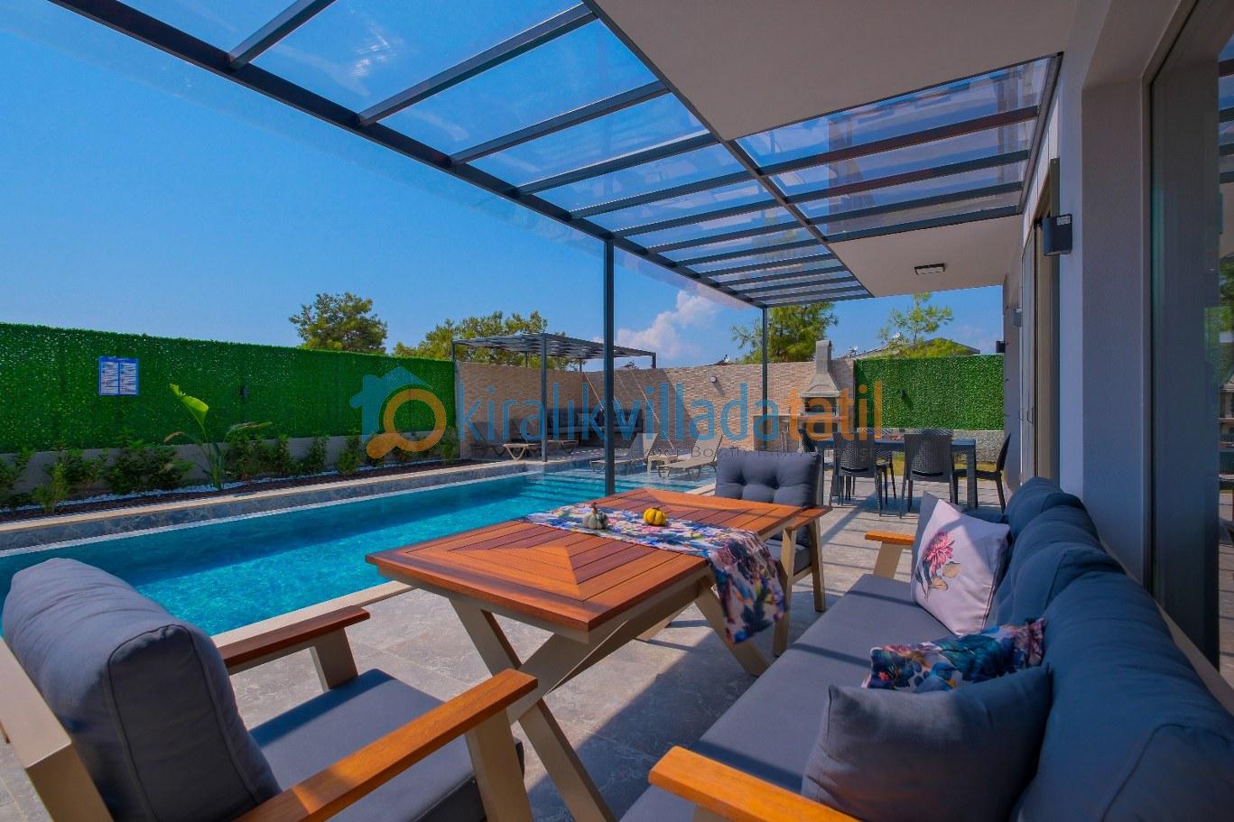 Bu ilan ait Detaylı açıklama ve bilinmesi gereken detaylarFethiye’nin en gözde bölgelerinden biri olan Hisarönü, hem doğayla iç içe huzurlu atmosferi hem de eğlence dolu gece hayatıyla tatil severlerin en çok tercih ettiği destinasyonlardan biridir. İşte tam da bu bölgede yer alan özel kiralık villamız, modern tasarımı, geniş yaşam alanları ve merkezi konumuyla misafirlerine unutulmaz bir tatil deneyimi yaşatmaktadır. Villamız, 3 yatak odası ve 6 kişilik konaklama kapasitesiyle aileler ve arkadaş grupları için mükemmel bir seçenektir. Üç katlı yapısı sayesinde hem ferahlık hem de mahremiyet sağlar. Geniş salonu, özenle dekore edilmiş modern mobilyaları ve aydınlık iç mekânıyla, misafirlerine ev sıcaklığında konfor sunar. Salon bölümünde konforlu oturma grubu, klima, uydu TV ve havuza açılan geniş bir teras kapısı bulunmaktadır. Amerikan mutfak, tatil süresince ihtiyaç duyulabilecek tüm mutfak araç gereçleriyle donatılmıştır: buzdolabı, bulaşık makinesi, fırın, mikrodalga, kahve makinesi, su ısıtıcı ve yemek takımları eksiksiz şekilde misafirlerin kullanımına sunulmuştur. Yatak odalarının her biri geniş, ferah ve modern detaylarla döşenmiştir. Temizliği, düzeni ve ferahlığıyla öne çıkan odalarda konforlu yataklar, dolaplar, klima ve bazı odalarda özel balkon yer alır. Ana yatak odasında özel banyo ve dinlenme alanı bulunmakta, bu da konforlu bir tatil için önemli bir avantaj sunmaktadır. Villamızın dış alanı, misafirlerin keyifli vakit geçirmesi için özenle düzenlenmiştir. Özel yüzme havuzu, şezlong takımı, güneşlenme alanı, oturma grubu ve barbekü alanı sayesinde hem gündüz hem de akşam saatlerinde huzur dolu anlar yaşanabilir. Gün boyu havuzun keyfini çıkarabilir, akşam serinliğinde sevdiklerinizle mangal yaparak hoş sohbetler edebilirsiniz. Villamızın en dikkat çekici özelliklerinden biri, merkezi konumudur. Hisarönü’nün hareketli çarşısı, restoranları, marketleri ve eğlence merkezleri yürüyüş mesafesindedir. Araç kullanmadan bölgenin tüm imkânlarına kolayca erişebilirsiniz. Ayrıca dünyaca ünlü Ölüdeniz Plajı yalnızca 10 dakikalık sürüş mesafesindedir. Burada masmavi denizin tadını çıkarabilir, dilerseniz Babadağ’dan yamaç paraşütü yaparak Fethiye’nin büyüleyici manzarasını gökyüzünden izleyebilirsiniz. Doğanın huzuru ile eğlencenin tam ortasında konumlanan bu villa, misafirlerine hem dinlendirici hem de hareketli bir tatil fırsatı sunar. Her detayı özenle düşünülmüş bu özel konaklama alanı, Kiralık Villada Tatil güvencesiyle sizleri bekliyor.