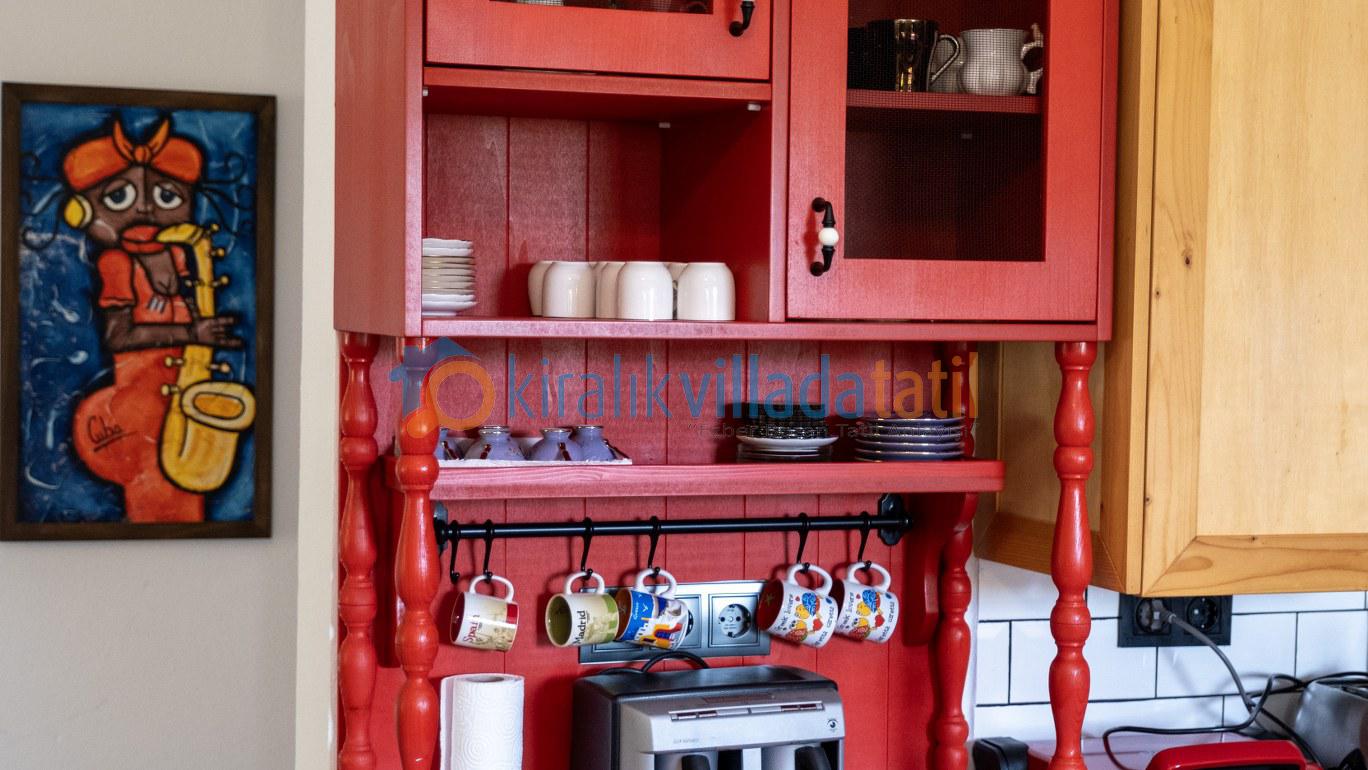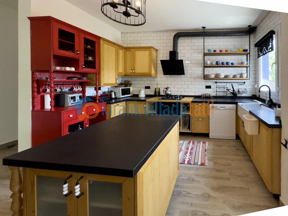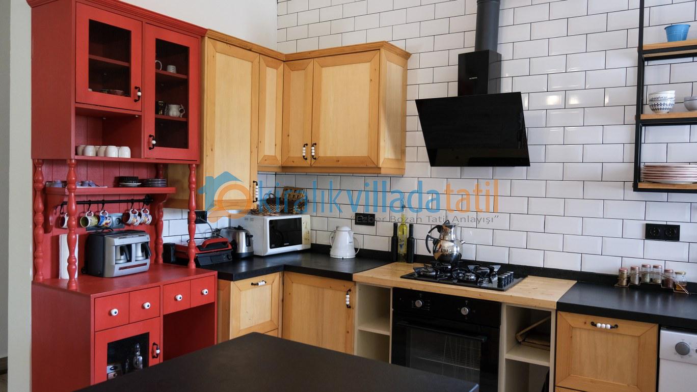 Tatil boyunca ihtiyaç olabilecek gerekli ev ve mutfak araç gereçlerine sahip olan villada, misafirlerin konforu göz önüne alınarak, modern ve şık malzemeler ile dizayn edilmiştir.