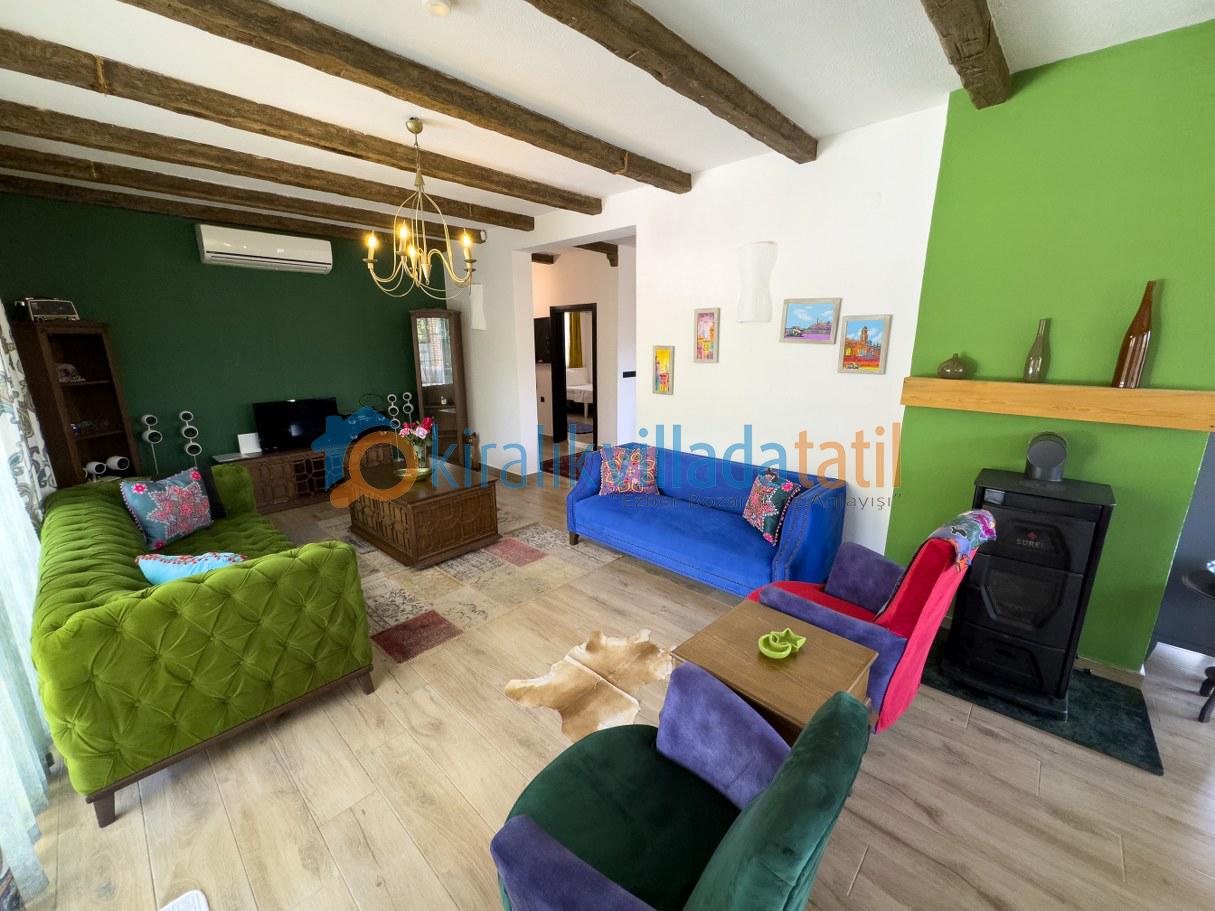 Doğa içerisinde, geniş yeşil bahçesi, otantik tasarım mimarisi ile huzurlu ve dinlendirici bir tatil sizleri beklemektedir. Aynı zamanda, ev eşyaları da otantik tasarım olarak dizayn edilmiş olup, hayranlık bırakmaktadır.