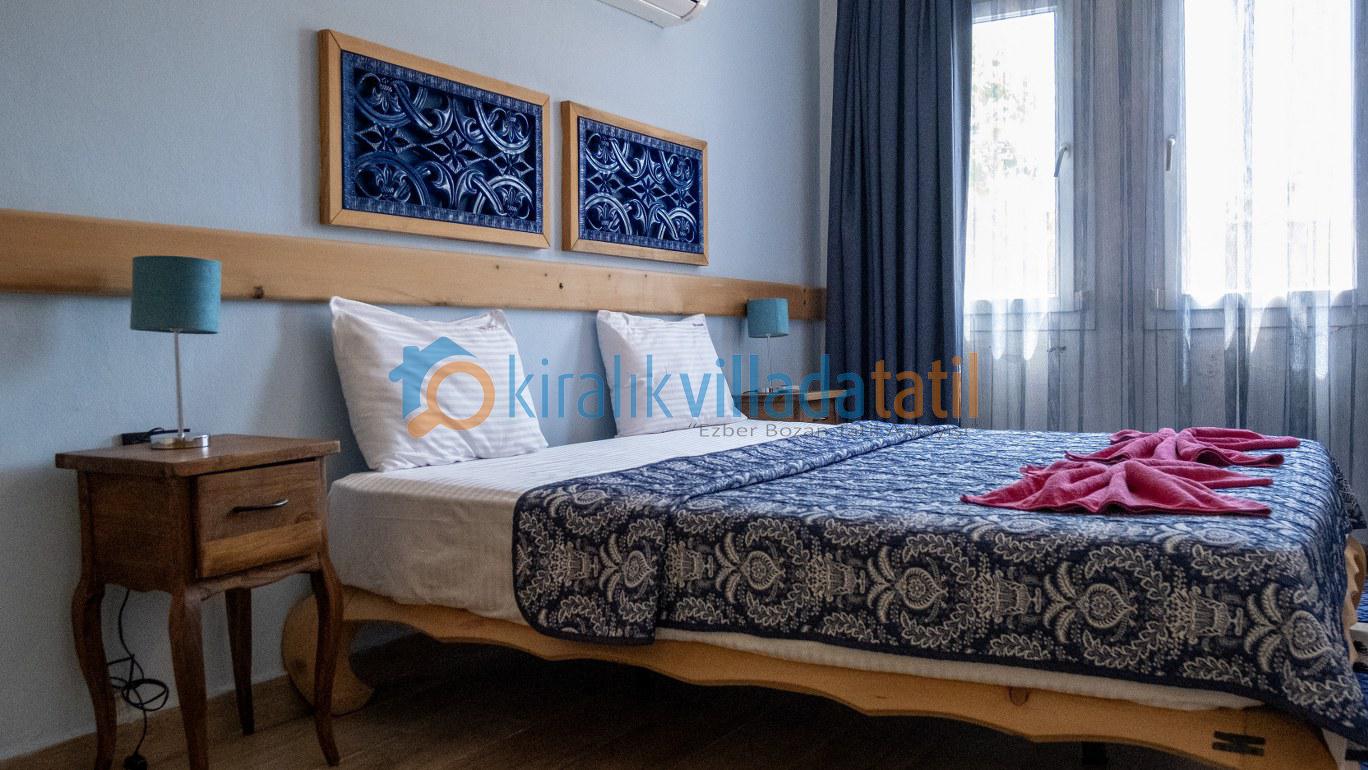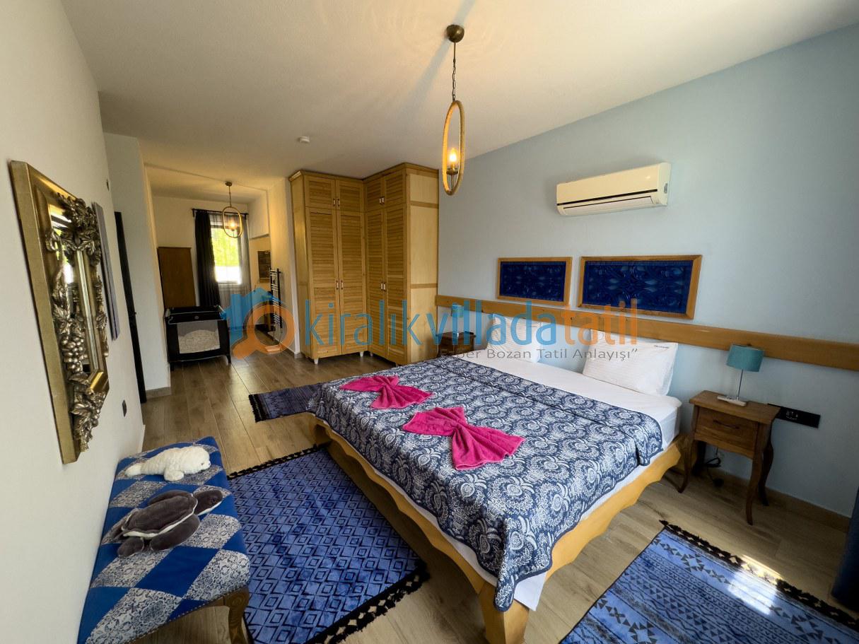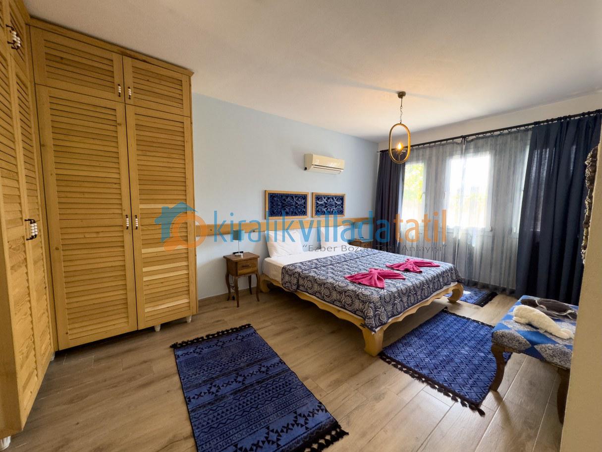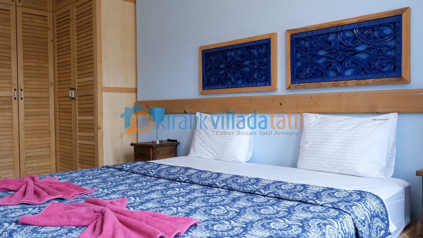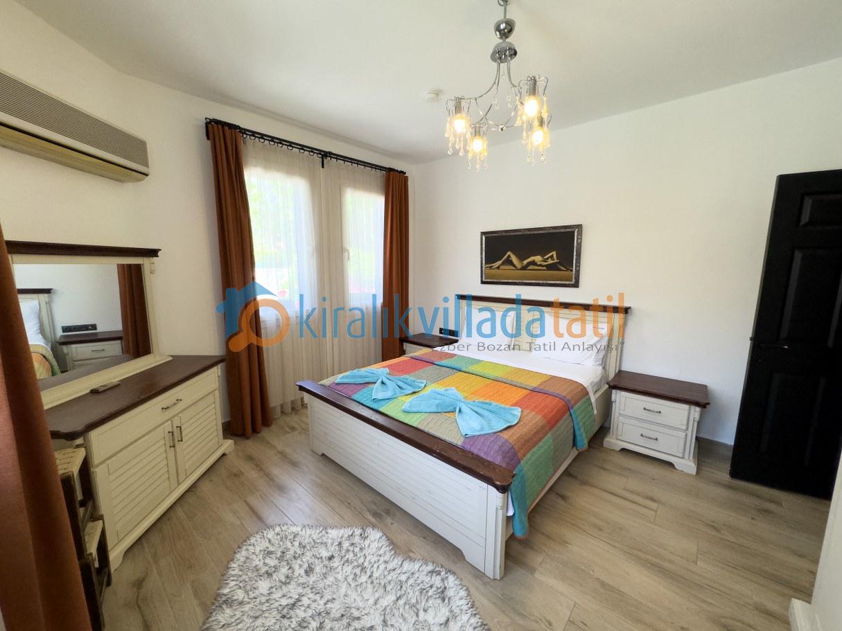Üç yatak odası bulunan villanın, iki yatak odasında çift kişilik yatak , diğer yatak odasında ise, iki adet tek kişilik yatak vardır. Yatak odalarının kendisine ait gerekli od amalzemeleri, banyo-wc mevcuttur.