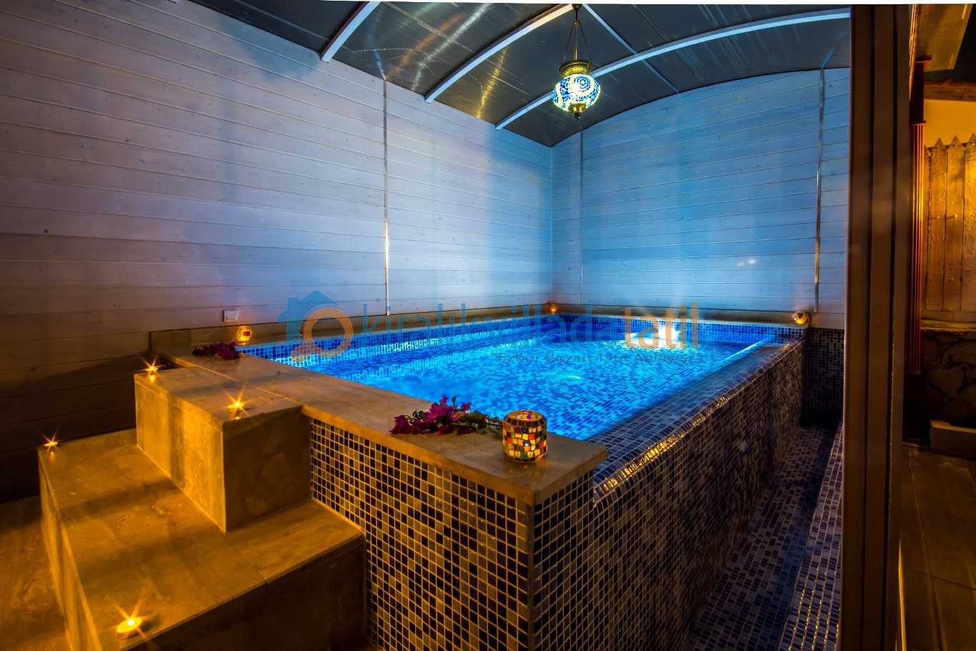Villada hem açık yüzme havuzu hem de kapalı hidromasajlı havuz bulunmaktadır. Her iki havuzda da ısıtma sistemi yer almakta olup villa yılın dört mevsimi konaklamaya uygundur. özellikle sonbahar ve kış aylarında balayı planlayan çiftler için sıcak konforlu ve izole bir ortam sunar. Havuz ısıtma hizmeti günlük 2.000 TL olup, kullanım talebinin rezervasyon aşamasında bildirilmesi gerekmektedir. Havuz suyu sıcaklığı hava koşullarına bağlı olarak yaklaşık 20–28 derece arasında değişmektedir.ısıtma isteyen konukalrımız gelmedne iki gün öncesi firmamızı arayarak bilgi vermeleri gerekmektedir