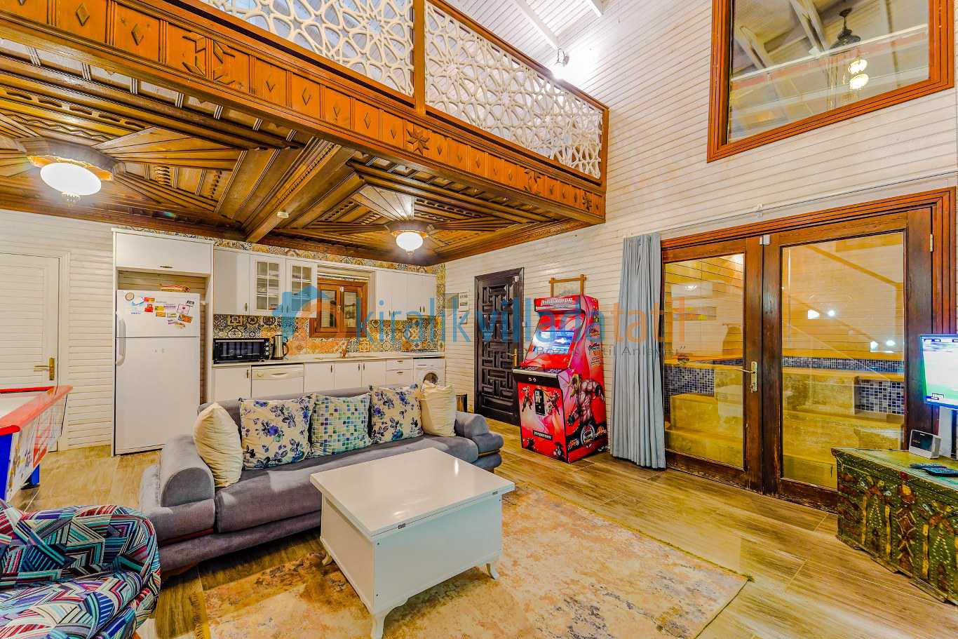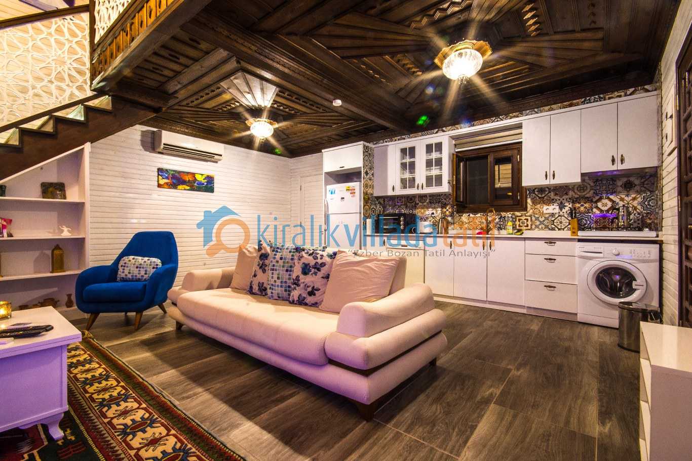 iç mekânda tam donanımlı mutfak tüm mobilyalar, internet bağlantısı ütü ve saç kurutma makinesi gibi günlük ihtiyaçlara yönelik ekipmanlar eksiksiz olarak yer almaktadır. Villaya ait özel otopark alanı mevcuttur.