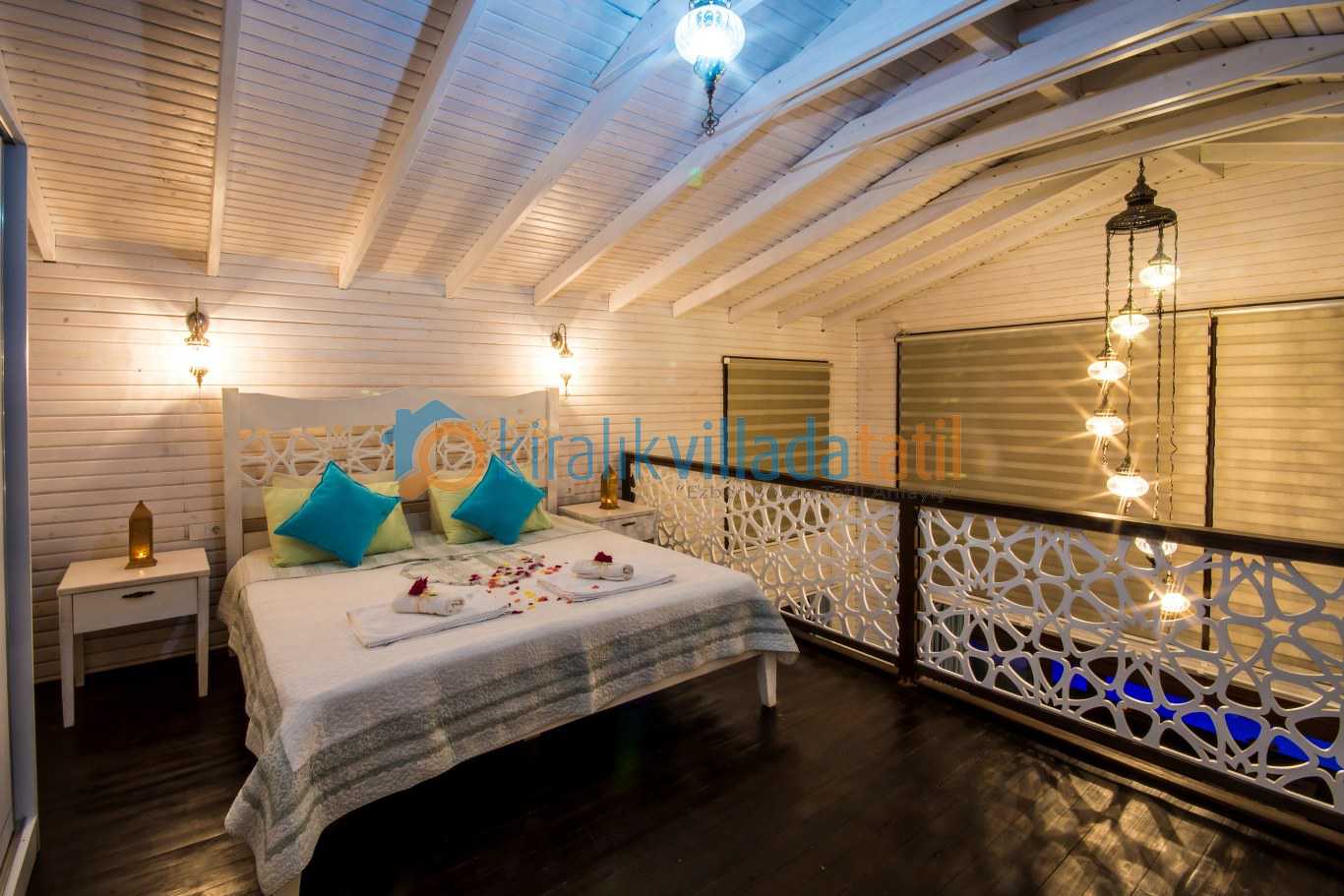 tek yatak odalı yapısıyla iki kişilik konaklama kapasitesine sahip olan villamız oturma alanında yer alan konforlu kanepe sayesinde bir çocuklu aileler için de uygundur. sessiz sakin ve doğa içinde konumlanan bu villa; balayı villası ve muhafazakar villa arayışında olan misafirler için ideal bir seçenektir.