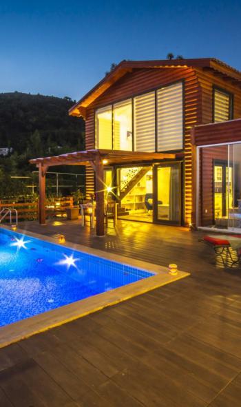 Bu ilan ait Detaylı açıklama ve bilinmesi gereken detaylarKalkan İslamlar köyünde bulunan kendine has konsepti ile benzersiz olan bu balayı villamız, tek yatak odası ile 2 kişilik kapasiteye sahiptir. Küçük çocukları olan aileler için Oturma odasındaki kanepe ile 2 kişi + 1 çocuk kabul edilebilir. Hem açık hem de kapalı jakuzi havuzu bulunmakta ve Havuzunda ısı pompası olması sebebi ile 12 ay açık olan bir villamızdır. Kış dönemlerinde de Balayı yapmak isteyen konuklarımız için dizayn edilmiştir. Villamız İslamlar köyünün en yüksek tepelerinden birinde konumlanmış olup, muhteşem Kalkan ve Patara manzarasına sahiptir. Osmanlı tarzından esinlenen motifleri ile sofistik bir tasarıma sahip villamız tamamen ahşap malzeme ile yapılmıştır. Geniş galerisi ve camları sayesinde ışığı çok iyi bir şekilde alan villamız da bu sayede İslamlar köyünün doğasını ve deniz manzarasını heryer den rahatlıkla görebilirsiniz. Geniş havuz terası, kamelyası, havuzu ve kapalı hidromasajlı havuzu ile rahat bir ortamda tatil yapacağınız villamız, çevresindeki ahşap çitler ve doğal olarak etraftan tamamen muhafazakar hale getirilmiş durumdadır.Villamız içinde ihtiyacınız olan tüm mobilya mutfak araç gereçleri ütü saç kurutma makinesine kadar mevcuttur. Villamız korunaklı muhafazakar yapısı ile Balayı çiftlerimiz için ve küçük bebeği olan konuklarımız için ideal villalardan biridir