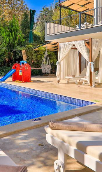 Kalkan’ın yemyeşil doğasıyla ünlü İslamlar Köyü’nde yer alan bu özel villamız, doğanın kalbinde huzurlu bir tatil deneyimi yaşamak isteyenler için mükemmel bir seçenektir. 3 yatak odasıyla 6 kişiye kadar konaklama kapasitesi sunan villamız, yüksek düzeyde korunaklı havuzu sayesinde mahremiyetine önem veren misafirler için de idealdir.