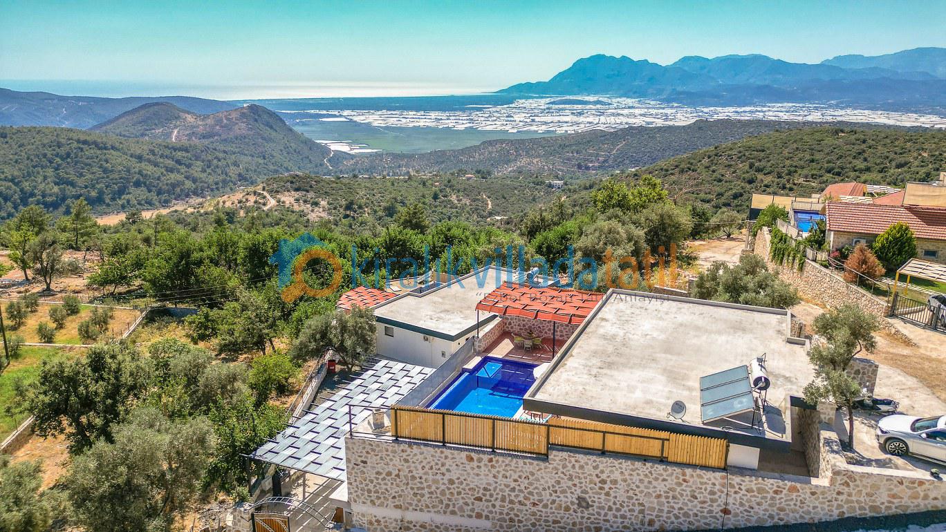 Bu ilan ait Detaylı açıklama ve bilinmesi gereken detaylarKalkan İslamlar mevkiinde, doğanın içinde konumlanan bu özel villa 2 yatak odası ve 4 kişilik konaklama kapasitesiyle hem çekirdek aileler hem de balayı çiftleri için konforlu bir tatil alanı sunar. Şehir merkezine ve denize araçla yaklaşık 10–15 dakikalık mesafede bulunması sayesinde sakin bir atmosferde konaklarken ihtiyaç duyulan noktalara da kolayca ulaşım sağlanabilir. Panoramik Patara Plajı ve deniz manzarasına sahip olması villaya ayrı bir değer katar.