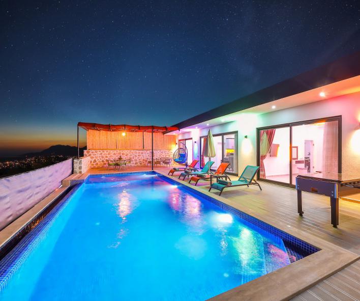 Doğa içinde konforlu, deniz manzaralı ve mahremiyet sunan yapısıyla öne çıkan bu korunaklı villa; Kalkan bölgesindemuhafazakar villa arayan misafirler için dengeli bir villa kiralama alternatifidir. Özellikle balayı tatili planlayan ve 4 kişilik lüks villa konforu arayan misafirler için öne çıkan bir kiralık villa seçeneğidir.