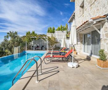 Tamamen taş bir yapıya sahip villamız doğa içinde tatil yapmak isteyen müşterilerimiz için ideal bir villadır. Otoparkı, internet bağlantısı, özel barbeküsü, kamelyası bulunan villamız sessiz sakin bir ortam içinde kafa dinlemek isteyen müşterilerimiz için ideal bir villadır. Ayrıca etrafından alınan önlemler ile tamamen muhafazakar hale getirilmiş olup muhafazakar ailelerimiz için de en uygun villalardan biridir.