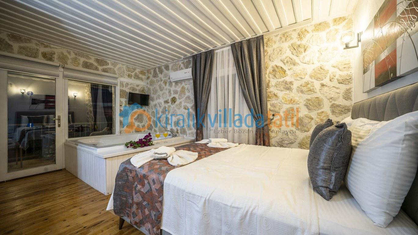 Kalkan’ın huzurlu atmosferi ile birleşen taş mimarili bu lüks villa; doğayla iç içe tatil isteyen, mahremiyetine önem veren ve konforu bir arada arayan misafirler için benzersiz bir tatil deneyimi sunmaktadır.