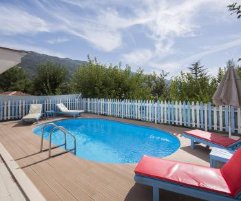 Geniş havuz terası ile keyifli vakit geçireceğiniz villamızda tüm yılın yorgunluğunu atacağınız villamızda güzel bir tatil sizleri beklemektedir.