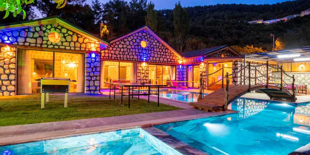 Kalkan İslamlar mevkiinde yer alan bu korunaklı ve muhafazakar villa; doğa içinde konumu lüks detayları sauna ve jakuzi ayrıcalıklarıyla hem huzurlu bir aile tatili hem de romantik bir balayı planlayan misafirler için güçlü bir kiralık villa seçeneğidir.