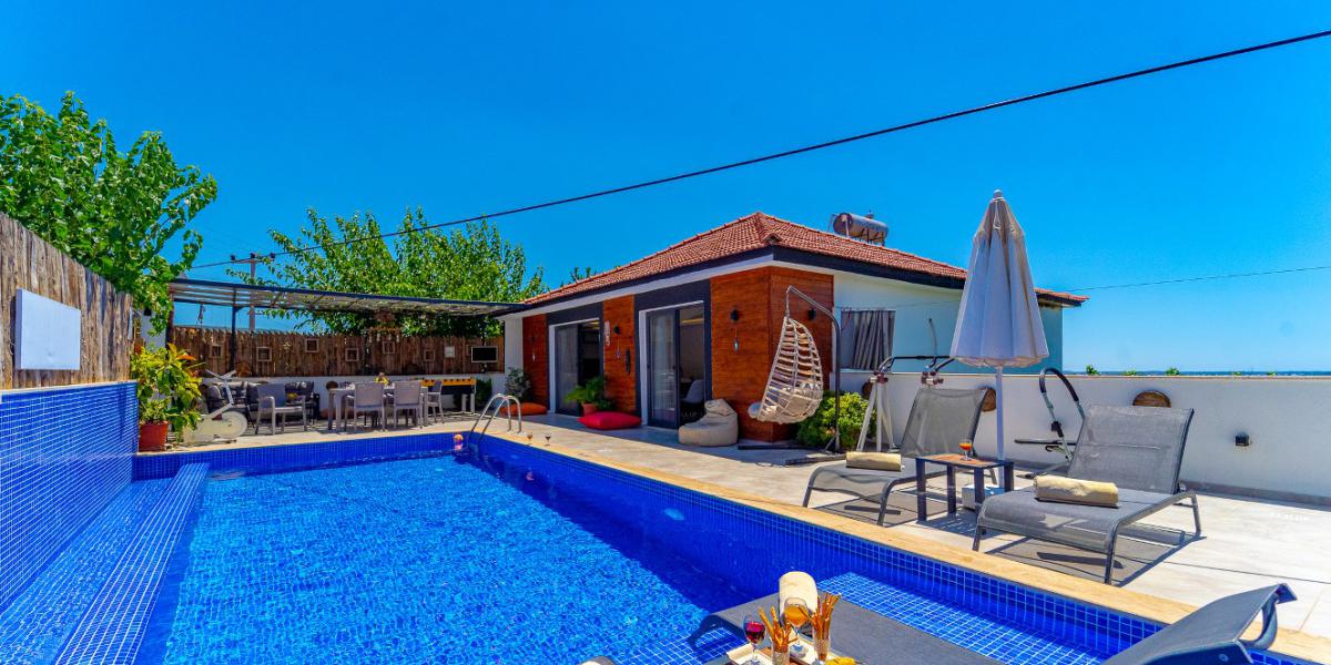 Bu ilan ait Detaylı açıklama ve bilinmesi gereken detaylarKaş'ın huzur dolu atmosferinde, Çayköy Mahallesi'nde bulunan bu kiralık tatil villası, doğal güzelliklerle çevrili, rahat ve konforlu bir konaklama deneyimi sunar. İki süit yatak odasıyla donatılmış olan bu villa, dört kişilik bir konaklama kapasitesine sahiptir. İki yatak odasında da özel banyo tuvalet bulunmaktadır ve ebeveyn yatak odasında jakuzi hizmetinizdedir. Doğanın içinde konumlanmış olan villamızın havuz alanı, dışarıdan bakıldığında görünmez ve gizliliğiniz için korunaklıdır. Kentin gürültüsünden ve stresinden uzakta, doğanın kucakladığı sakin bir ortamda tatil yapmak isteyen misafirlerimiz için mükemmel bir seçenektir. Kalkan merkezine ve plajına 14-15 kilometre, Saklıkent Kanyonu'na ise 20-25 kilometre mesafede bulunan villamız, hem şehir merkezine yakın hem de doğanın içindeki huzurlu bir konumdadır. Korunaklı ve jakuzili villa seçeneklerimiz arasında yer alan bu villa, balayı çiftleri ve çekirdek aileler için ideal bir tatil noktasıdır. Havuzun boyutu 8 metre uzunluğunda, 4 metre genişliğinde ve 1,5 metre derinliğindedir. Ayrıca çocuklar için ayrılmış sığ havuz bölümü bulunmaktadır. Havuz terasında ise kutu oyunları ve langırt gibi eğlenceli aktiviteler sunulmaktadır.