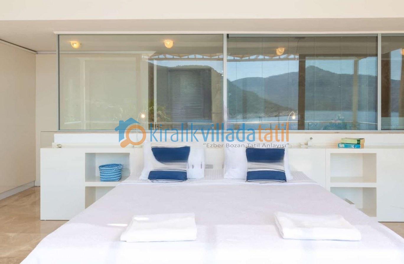 Kalamar Koyu’nun büyüleyici maviliği villanın havuz terasından, balkonlarından ve odalarından kesintisiz şekilde izlenebilir. Gün boyu deniz manzarasının eşlik ettiği bu özel ev, tatilin her anında ferahlık hissini ön planda tutar. Villa kiralamaplanı yaparken hem manzara hem de denize yakınlık arayan misafirler için konumu büyük bir avantaj sağlar.