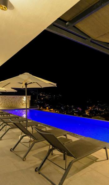 Bu ilan ait Detaylı açıklama ve bilinmesi gereken detaylarKalkan Akbel Bölgesi'nde bulunan lüks villamız, 5 yatak odası ve 10 kişilik konaklama kapasitesine sahiptir. Modern tasarımı ve şık yapısıyla size büyülü bir tatil deneyimi sunmaktadır. Büyük aileler veya arkadaş grupları için ideal olan bu deniz manzaralı kiralık villa, mavinin büyüleyici tonlarının arasında yer almaktadır. Üst katta sauna ve havuzda jakuzi gibi özellikler bulunmaktadır.