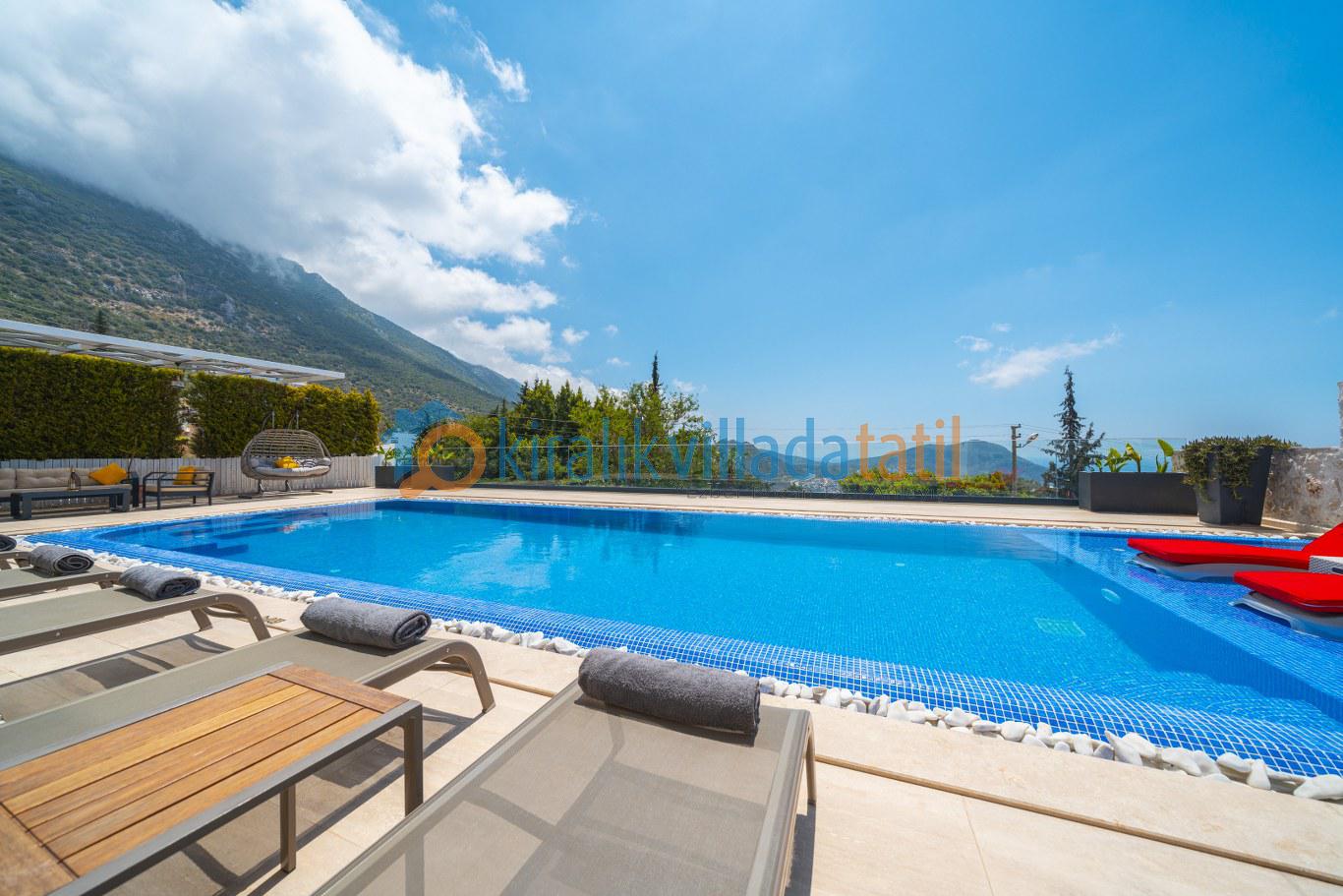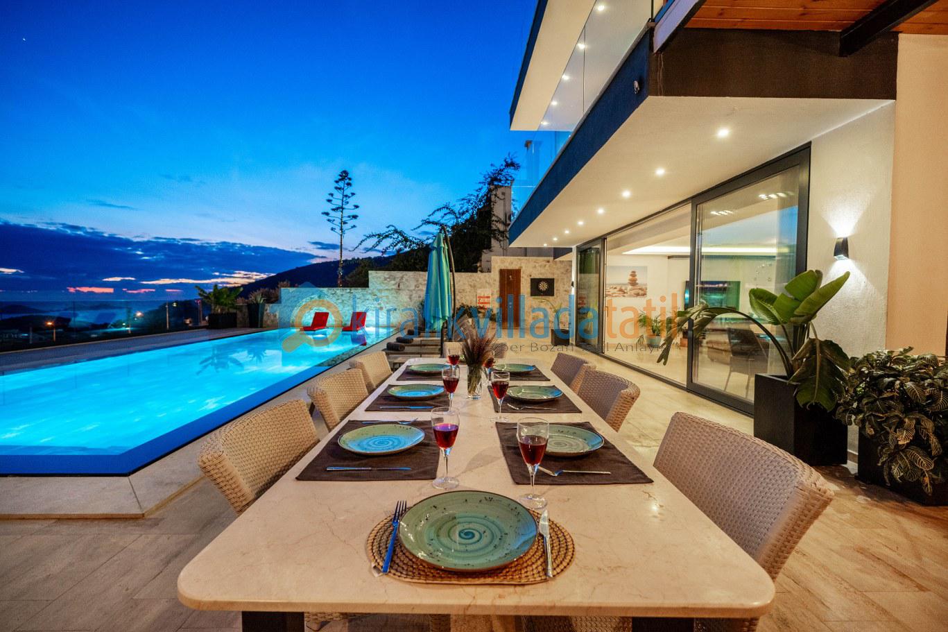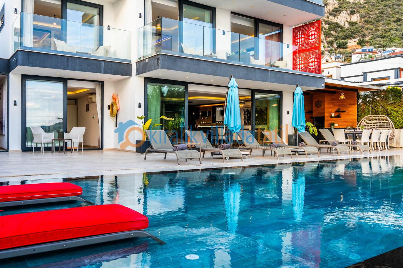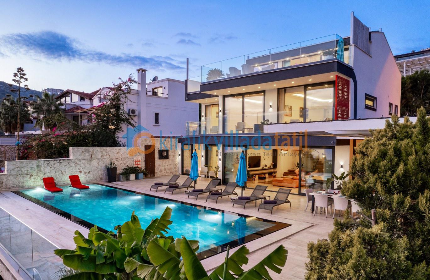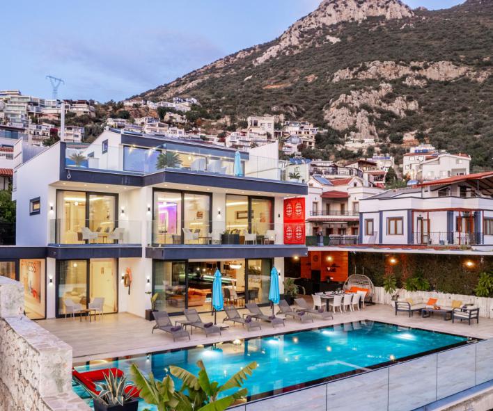 Manzarası, çatı katı cam kaplı havuzu, ısıtmalı dış havuzu, geniş terası, eğlence alanları ve merkeze yakın konumuyla bu villa; deniz manzaralı villa, kiralık villa, lüks villa ve villa kiralama arayışında olan misafirler için Kalkan Akbel bölgesinde öne çıkan, yüksek standartlı bir tatil seçeneğidir.