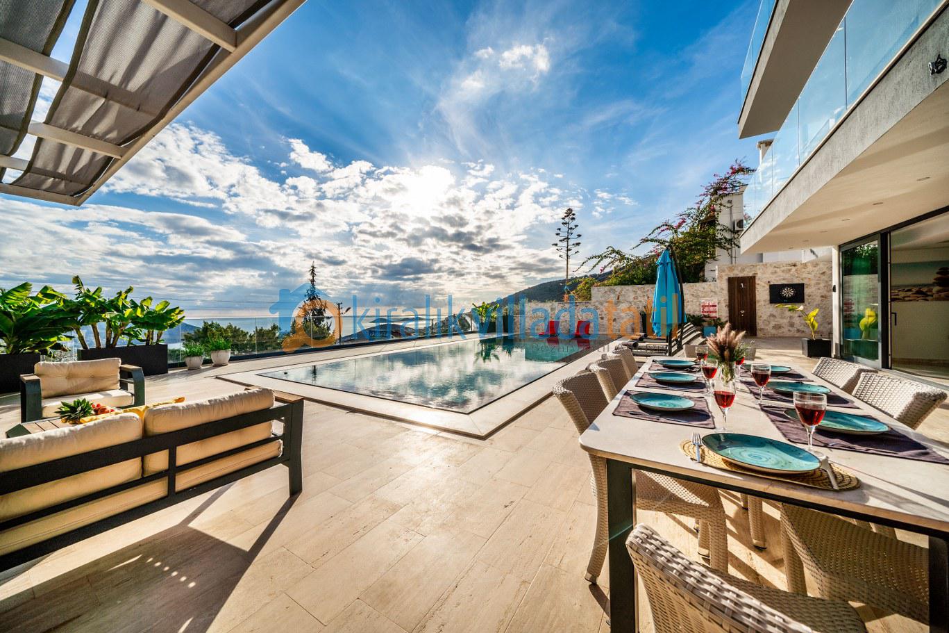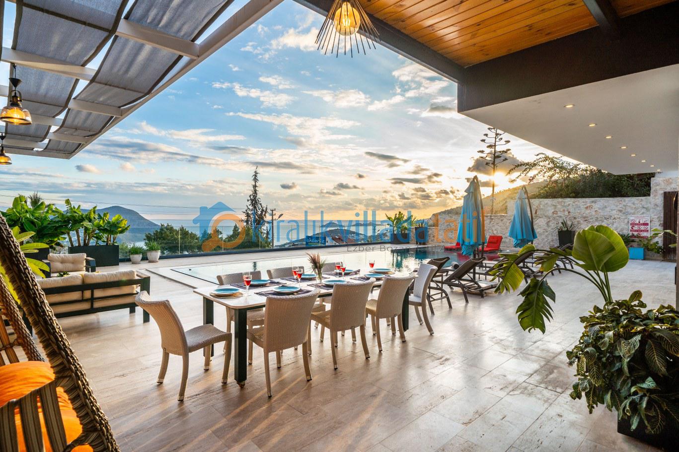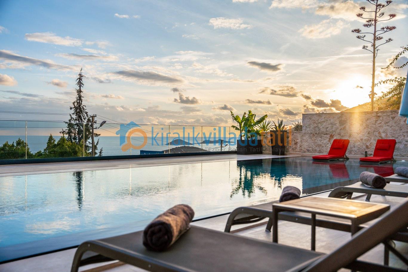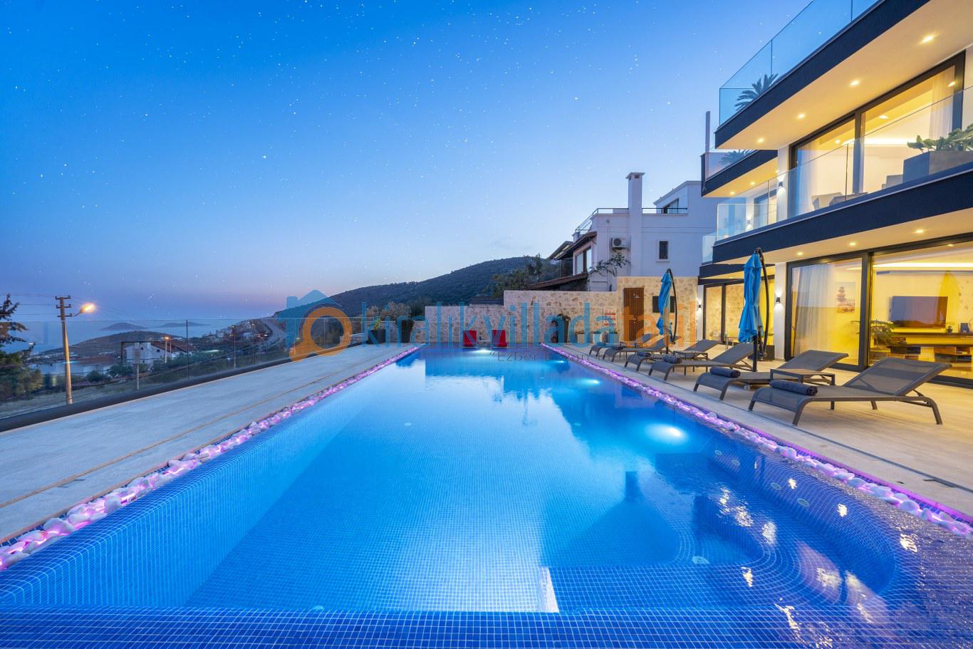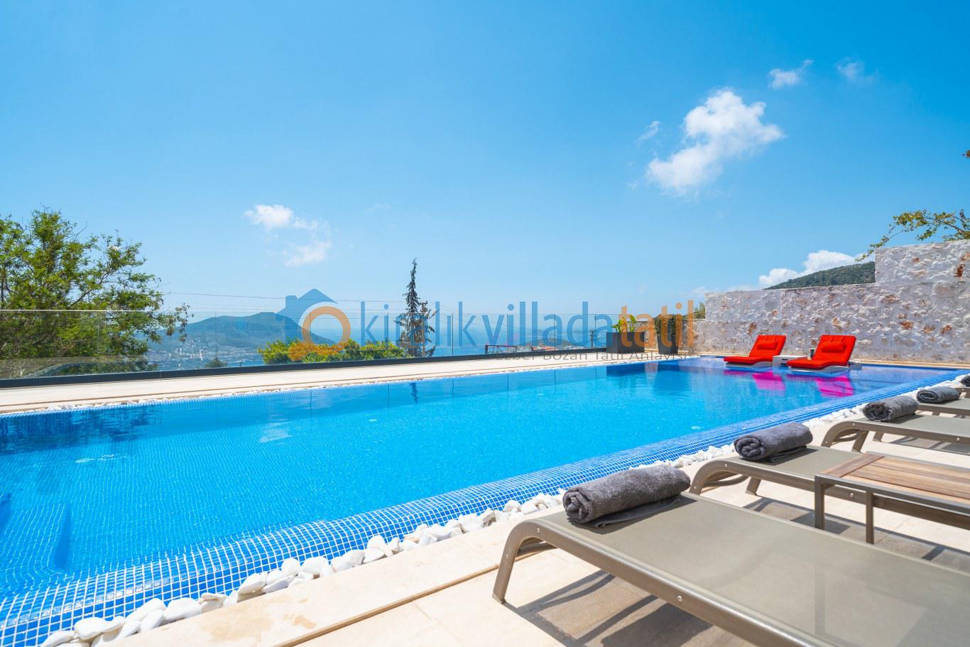 Manzarası, çatı katı cam kaplı havuzu, ısıtmalı dış havuzu, geniş terası, eğlence alanları ve merkeze yakın konumuyla bu villa; deniz manzaralı villa, kiralık villa, lüks villa ve villa kiralama arayışında olan misafirler için Kalkan Akbel bölgesinde öne çıkan, yüksek standartlı bir tatil seçeneğidir.