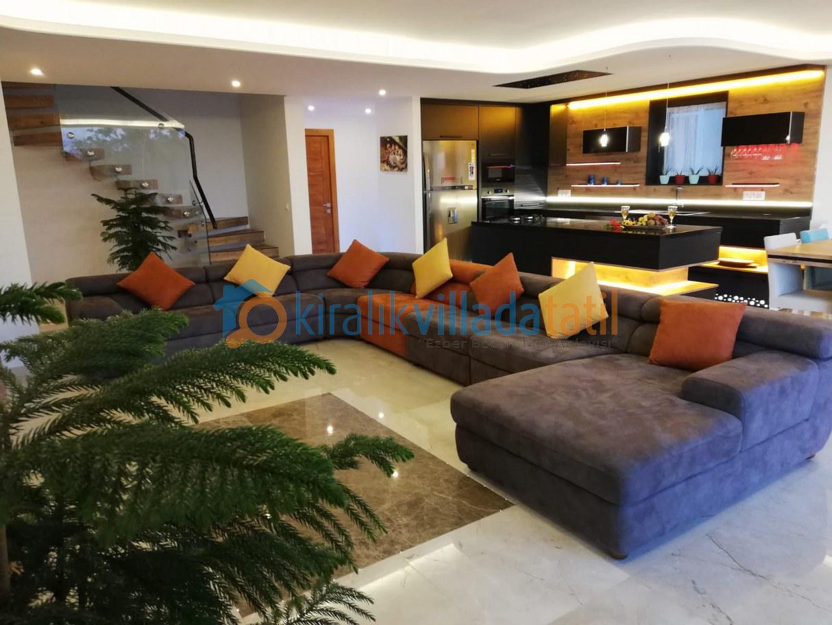 Kalkan Akbel Mevkiinde Deniz Manzaralı 10 Kişilik Tatil Villası