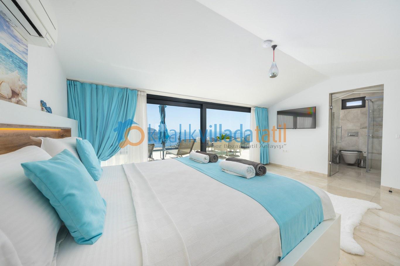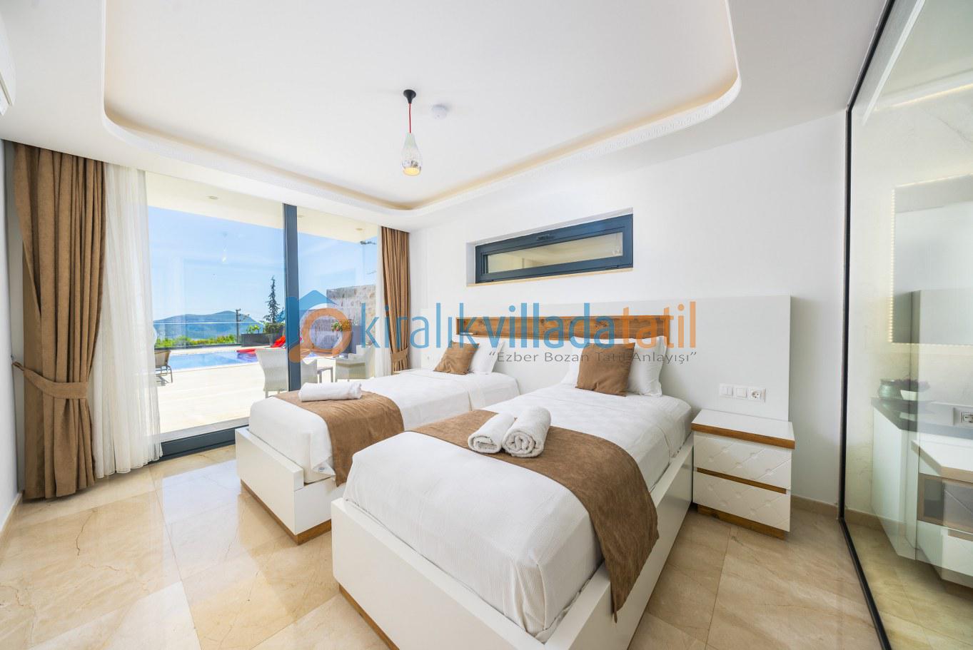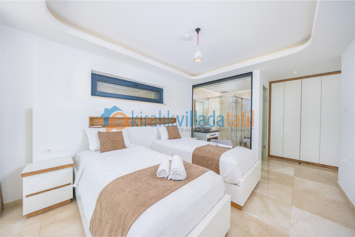 Villa toplam 5 yatak odasından oluşmaktadır. Üç yatak odasında çift kişilik yatak, iki yatak odasında ise ikişer adet tek kişilik yatak bulunmaktadır. Bu yerleşim planı, hem aileler hem de arkadaş grupları için dengeli ve konforlu bir konaklama imkânı sunar. Tüm yaşam alanları ferah, modern ve kullanışlı şekilde tasarlanmıştır.