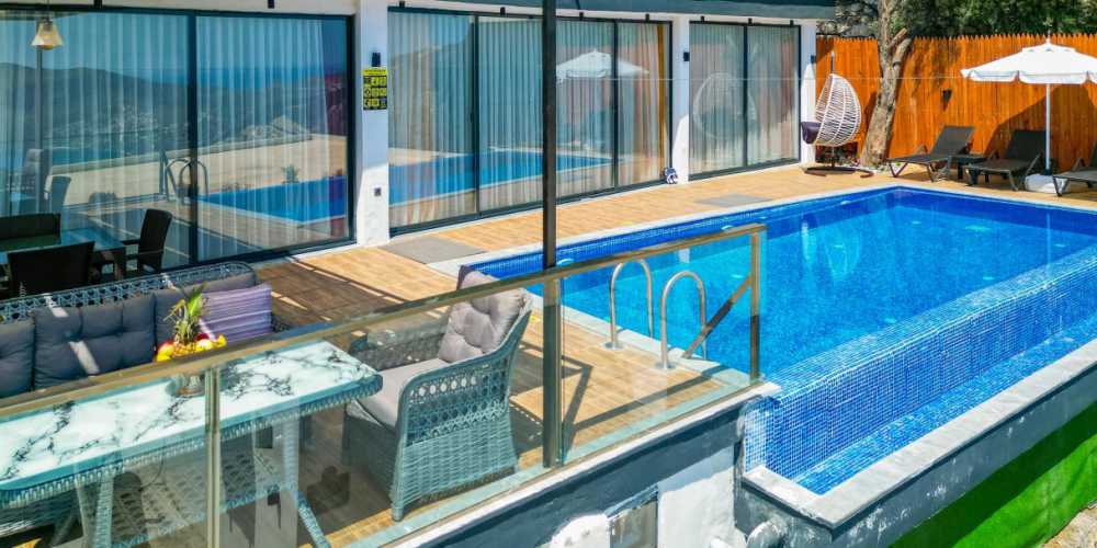 Villanın havuz alanı dışarıdan görünmeyecek şekilde planlanmış olup korunaklı villa özelliği taşımaktadır. bu sayede mahremiyete önem veren misafirler için rahat ve özgür bir kullanım sağlar. deniz manzarası eşliğinde vakit geçirebileceğiniz yaşam alanları sakin ve keyifli bir tatil atmosferi oluşturur.