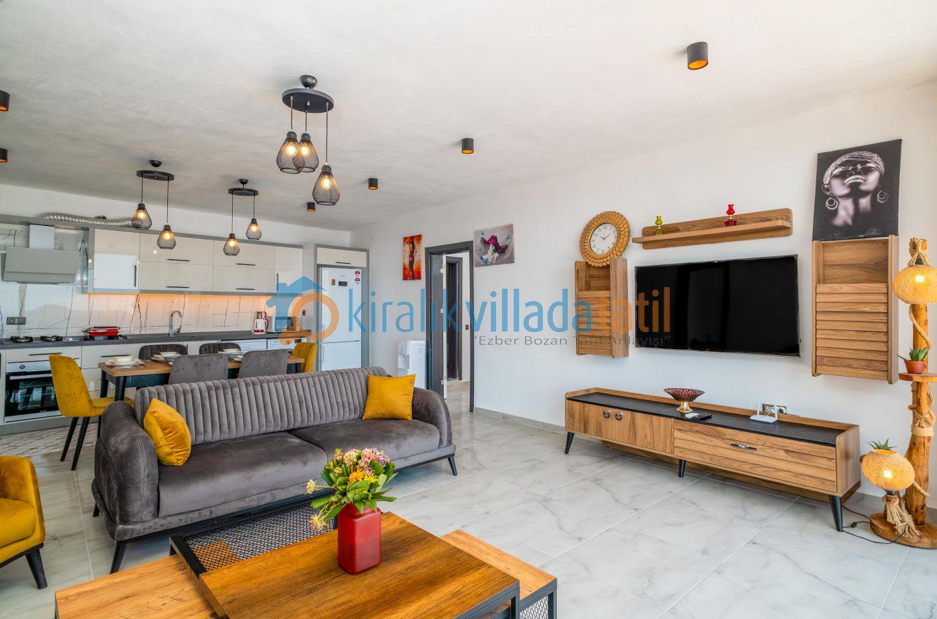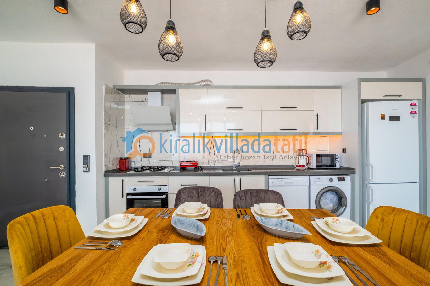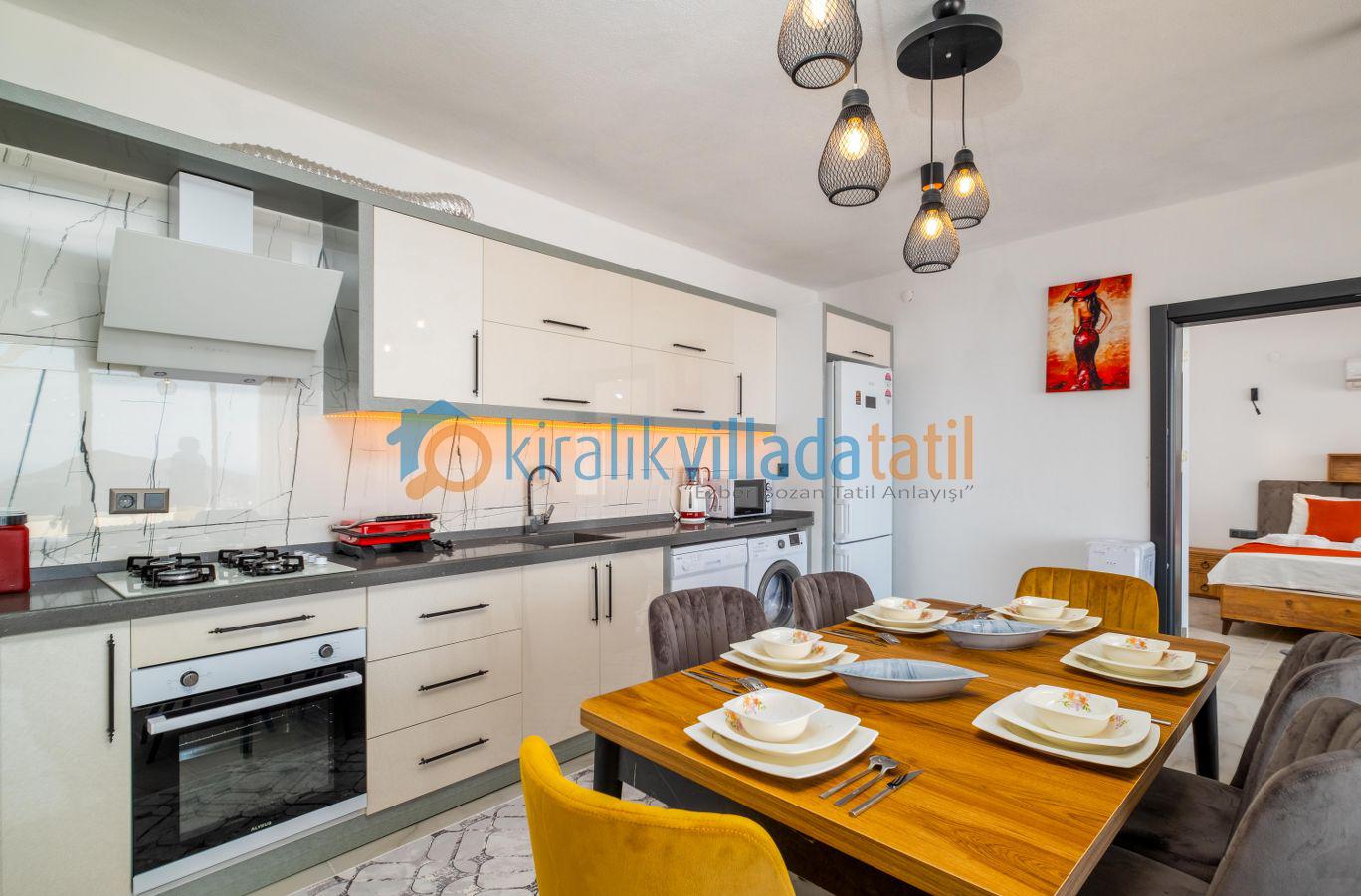 Villamız kalkan merkeze yakındır villa içinde ihtiyacınız olan tüm mobilya mutfak araç gereçleri ütü saç kurutma makinesine kadar mevcuttur