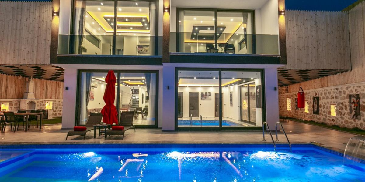 Kalkan Akbel bölgesi, manzarası ve sakin yapısıyla lüks villa tatili arayan misafirlerin en çok tercih ettiği lokasyonlardan biridir. Kapalı ısıtmalı havuzu, hamamı, saunası, jakuzisi ve eğlence alanlarıyla bu muhafazakâr villa, üst segmentte ve konfor odaklı bir villa kiralama deneyimi arayan misafirler için güçlü bir seçenek sunmaktadır.