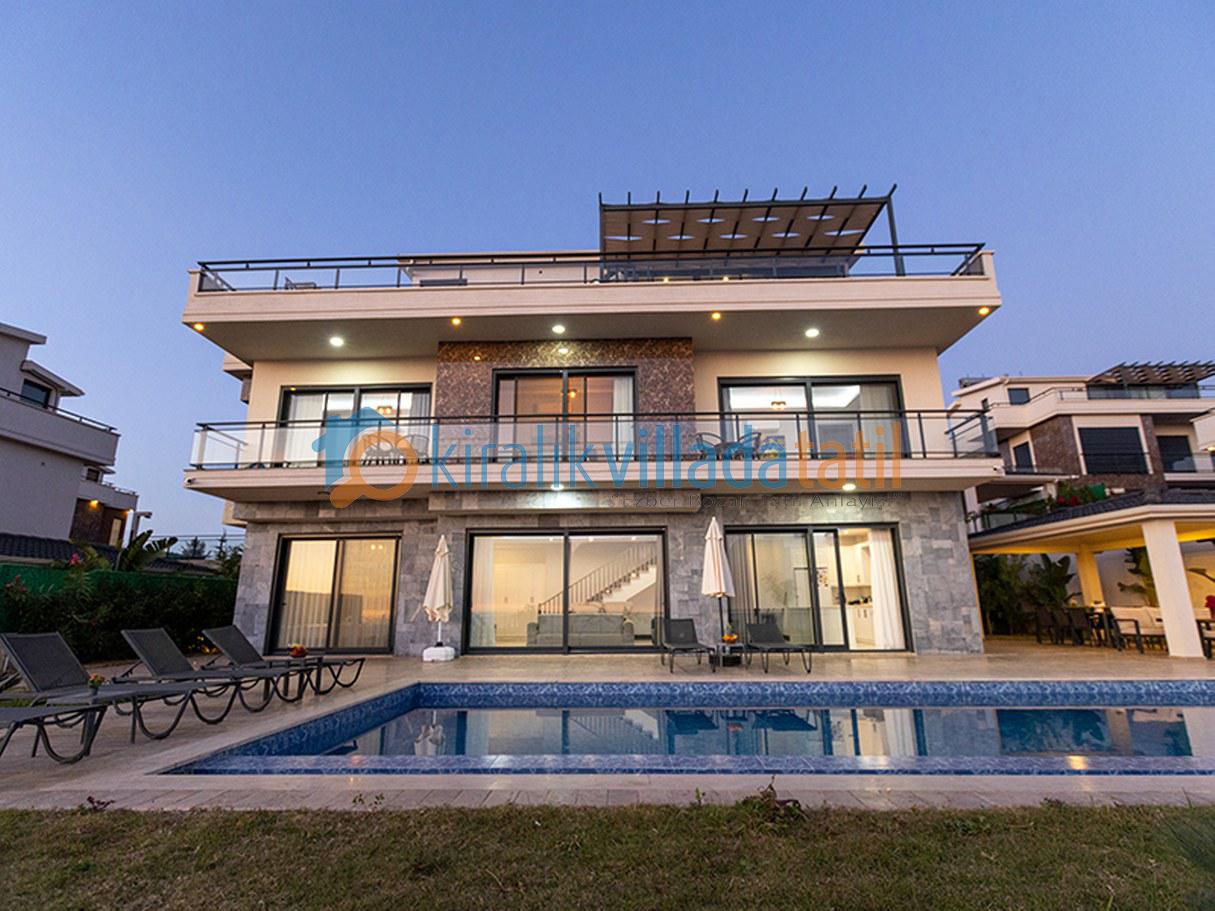 Deniz manzaralı villa konseptiyle öne çıkan yapı, günün her saatinde ferah ve dinlendirici bir manzara sunmaktadır. Özel yüzme havuzu, bahçe alanı, alarm sistemi ve otopark gibi detaylar konforlu bir konaklama için düşünülmüştür. Zemin katta geniş ve kullanışlı bir Amerikan mutfak ile ferah bir salon yer almakta olup ayrıca WC ve lavabo bulunmaktadır. Üst katlarda konumlanan süit yatak odaları hem konfor hem de mahremiyet açısından kullanışlı bir yerleşim sunmaktadır.