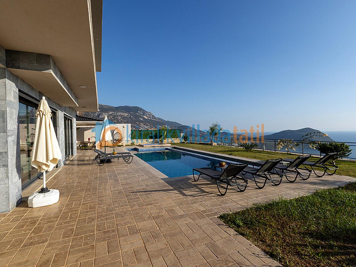 Kalkan Akbel Mevkiinde Deniz Manzaralı 10 Kişilik Tatil Villası