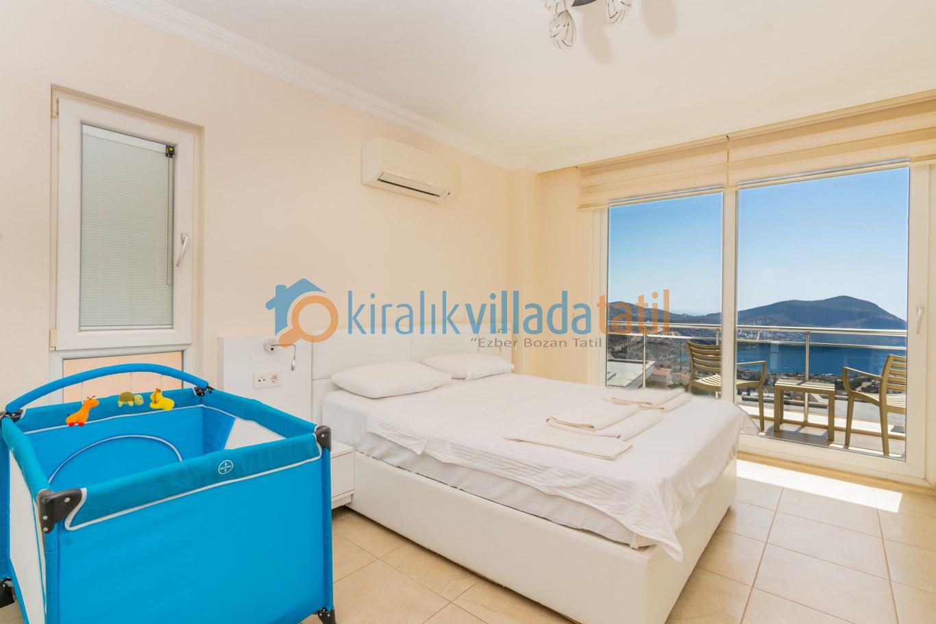 Tüm yatak odalarının banyo + WC ile donatılmış olması, lüks konaklama standardını üst seviyeye taşır. Villanın tamamı deniz manzarasına hâkimdir. Ana yatak odasında yer alan jakuzi, televizyon ve uydu sistemi, misafirlerin konforunu artıran ayrıcalıklı detaylar arasındadır. Villada 3 çift kişilik ve 4 tek kişilik yatak bulunmakta olup; talep eden konuklar için ücretli ekstra yatak, ayrıca portatif bebek yatağı ve mama sandalyesi temin edilebilir.