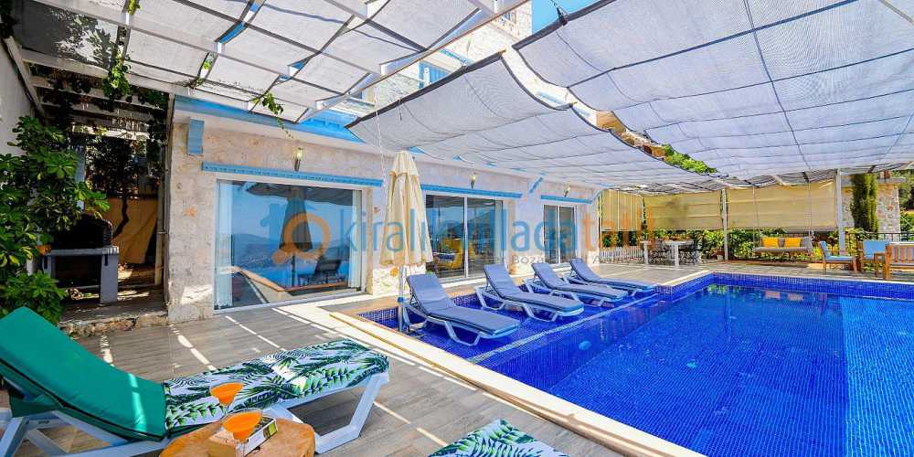 Kalkan Akbel Mevkiinde Deniz Manzaralı Korunaklı 10 Kişilik Tatil Villası