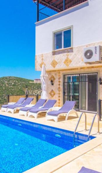 Bu ilan ait Detaylı açıklama ve bilinmesi gereken detaylarAntalya’nın en güzel tatil beldesi Kalkan’da bulunan Villamız, geniş ailelerin tercih ettiği, doğa ile iç içe, sakin ve dingin bir tatili özleyenlerin hayran kaldığı bir villadır. Bahçe içerisindeki tripleks villa, eşsiz gün doğumu ve gün batımlarıyla Kalkan ve adaların büyüleyici güzelliklerini gözler önüne serer. Eşsiz manzaralı villa içerisinde 8 yatak odası bulunmaktadır. 3 katlı villanın bahçesinde büyük yüzme havuzu yer alır. Villanın geniş terasında Kalkan manzarası eşliğinde hoşça vakit geçirebilirsiniz. Konforlu ve zevkli bir şekilde, kaliteli dekorasyon eşyaları ile döşenmiş villanın her katında salon ve mutfak bulunmaktadır.