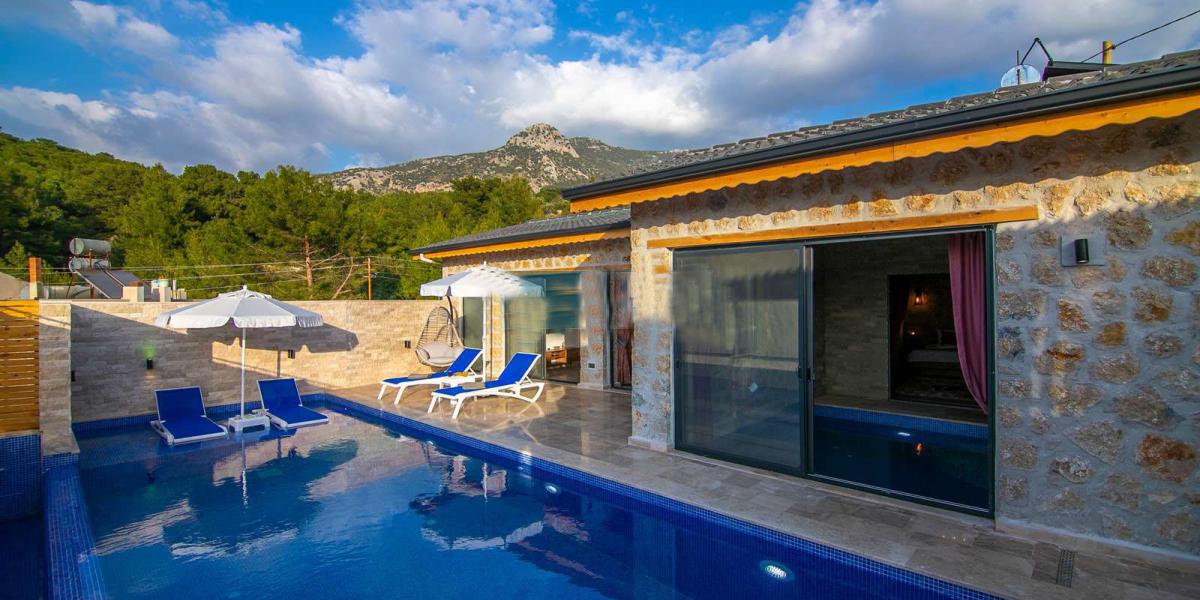 Kalkan Akbel Mevkiinde Korunaklı Lüks 4 Kişilik Tatil Villası
