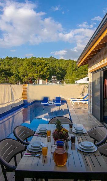 Villamız, kış dönemlerinde de tatil yapabilmeniz için ısıtmalı havuza sahiptir. Villamızın güzel ve rahatlatıcı doğası, konuklarımız için huzur dolu bir tatil deneyimi sunar. Villamız, muhafazakar ailelerimiz ve balayı çiftlerimiz için özellikle tasarlanmıştır ve korunaklı havuzu ile konuklarımızın gizliliğini sağlar. Villamızda, tatiliniz için gerekebilecek her türlü araç gereç mevcuttur.