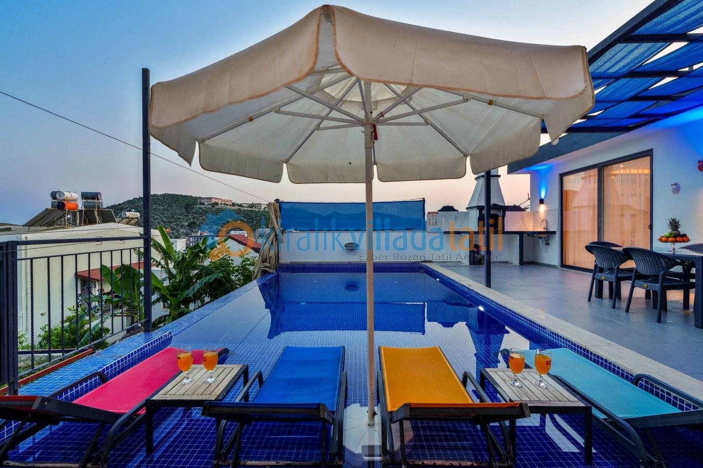 Kalkan Akbel bölgesinde yer alan bukiralık villa, doğa içinde konumu, jakuzili odası ve korunaklı yapısı ile korunaklı villa vemuhafazakar villa arayışında olan misafirler için villa kiralama planlarında güvenli ve konforlu bir alternatif sunmaktadır.