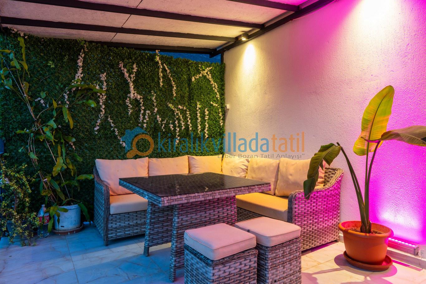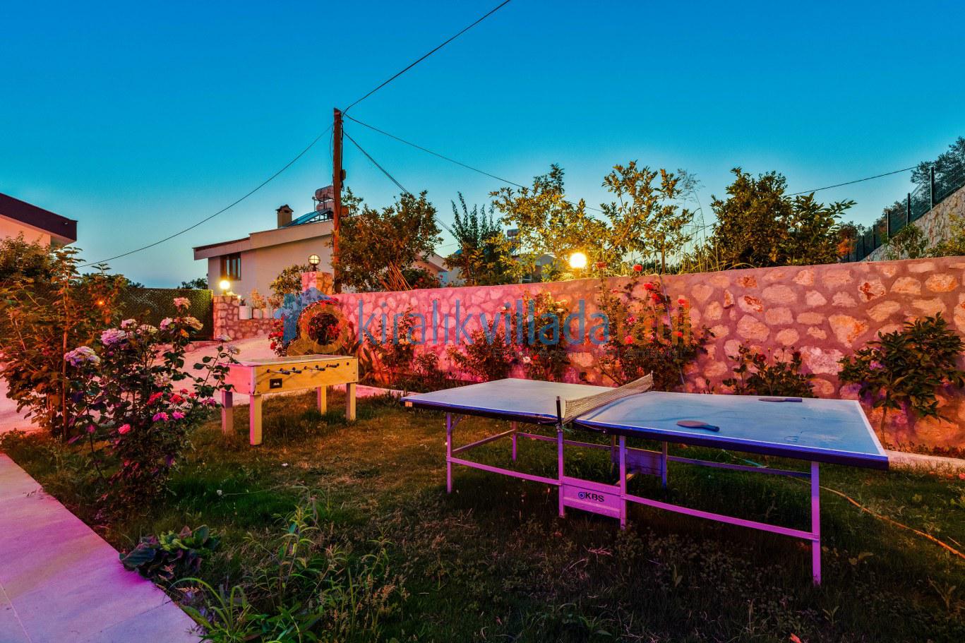 Dış alanda havuz terası dışarıdan görünmeyecek şekilde düzenlenmiştir. Bu özelliği sayesinde hem havuz keyfi hem de özel alan kullanımı bir arada sunulmaktadır. Villada masa tenisi bulunmaktadır ve konaklama süresince keyifli vakit geçirmek isteyen misafirler için eğlenceli bir aktivite alanı oluşturur.