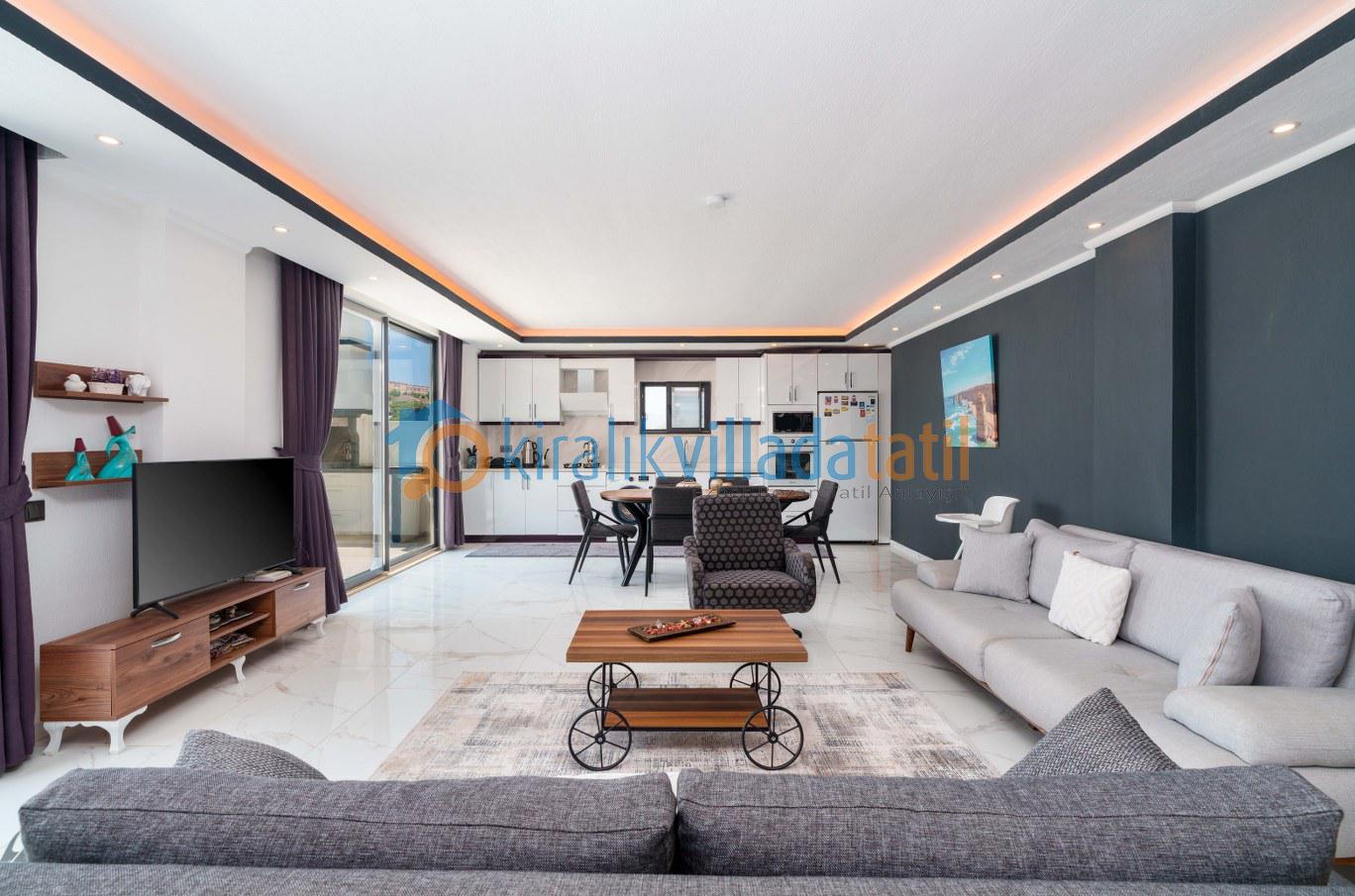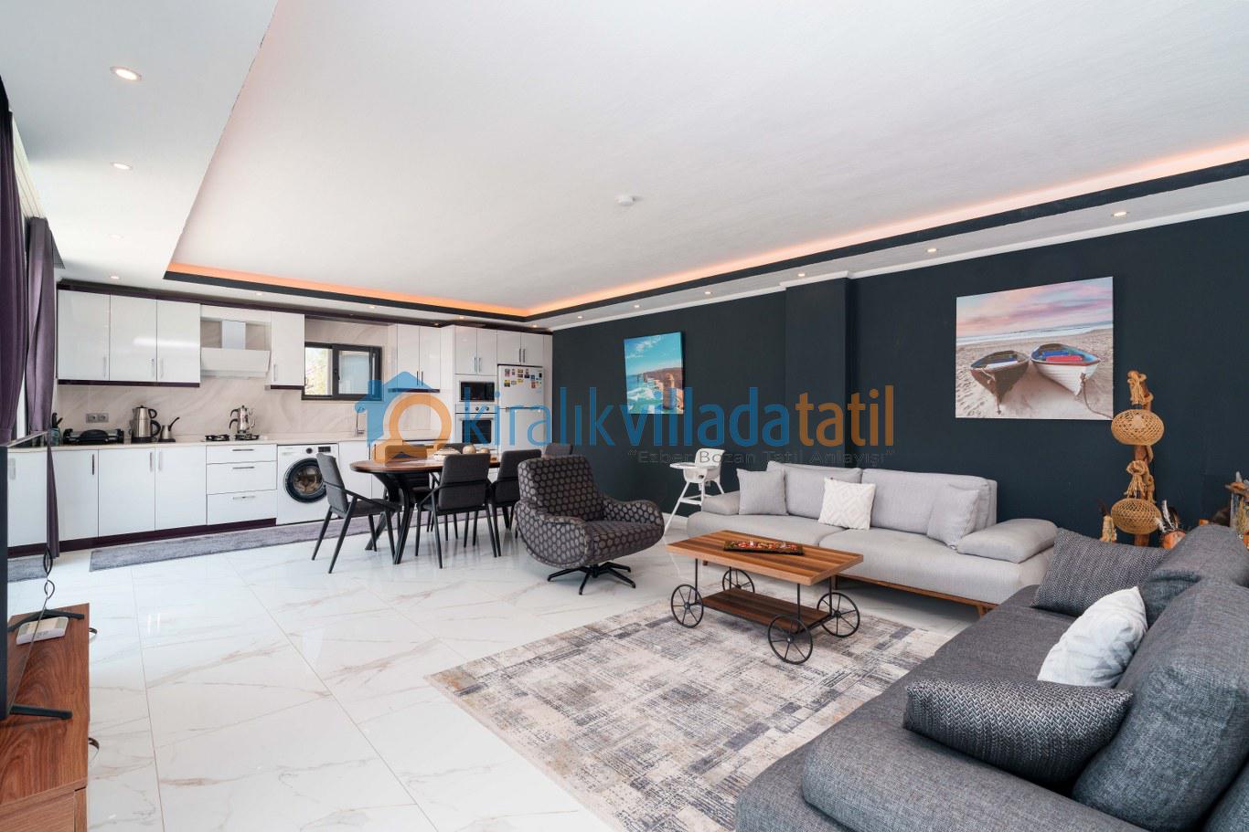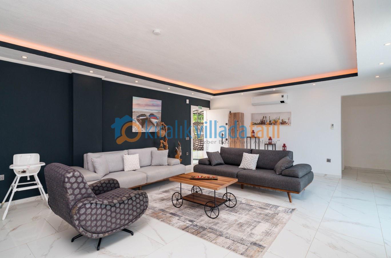 Modern detaylarla dekore edilmiş iç mekânlarda tatil süresince ihtiyaç duyulabilecek temel donanımlar bulunmaktadır. Ferah planlanan yaşam alanları sayesinde konaklama boyunca rahat bir kullanım sunar. Ana yatak odasında yer alan jakuzi, tatil sürecine ekstra konfor katmaktadır.